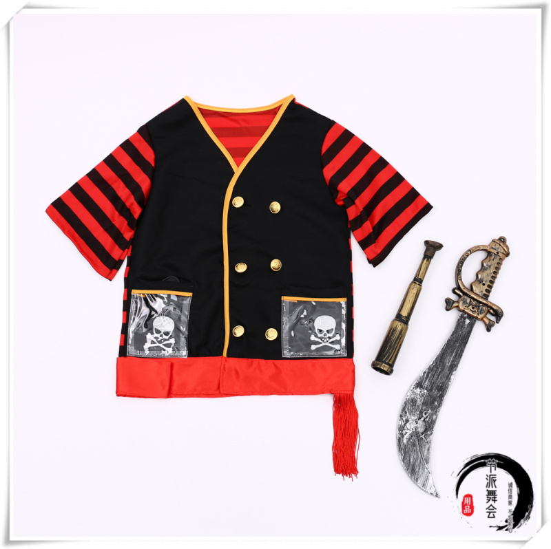 Product Name: Halloween Children's Pirate Costume for Boys - Short-sleeved Makeup Party Performance Cosplay Clothing for Boys