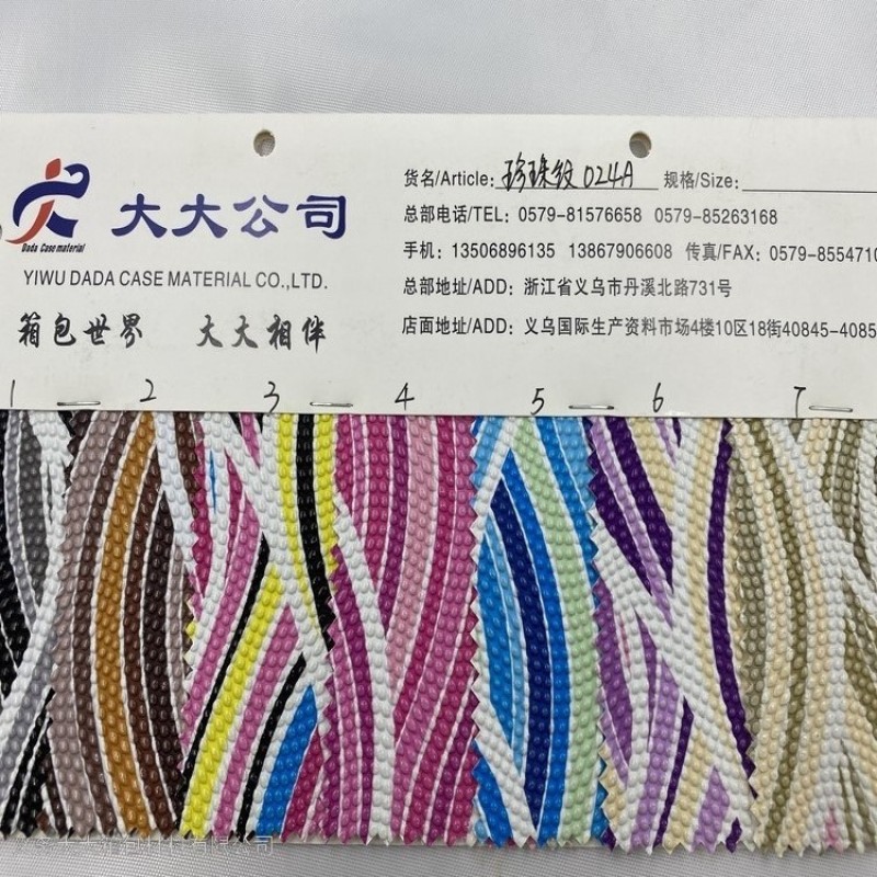 Large luggage material, Zhejiang luggage material industry leading enterprise, production and operation: leather/ pvc leather, artificial Leather, PU leather leather, pvc leather, leather printing, oxford cloth, transfer printed leather(Transfer leather), printed cloth, non-woven fabric, faille leather, satin, all kinds luggage fabric, luggage accessories, box and bag hardware accessories and other luggage materials. If you are looking leather manufacturer, leather wholesale, yiwu artificial leather information, please remember to contact us.