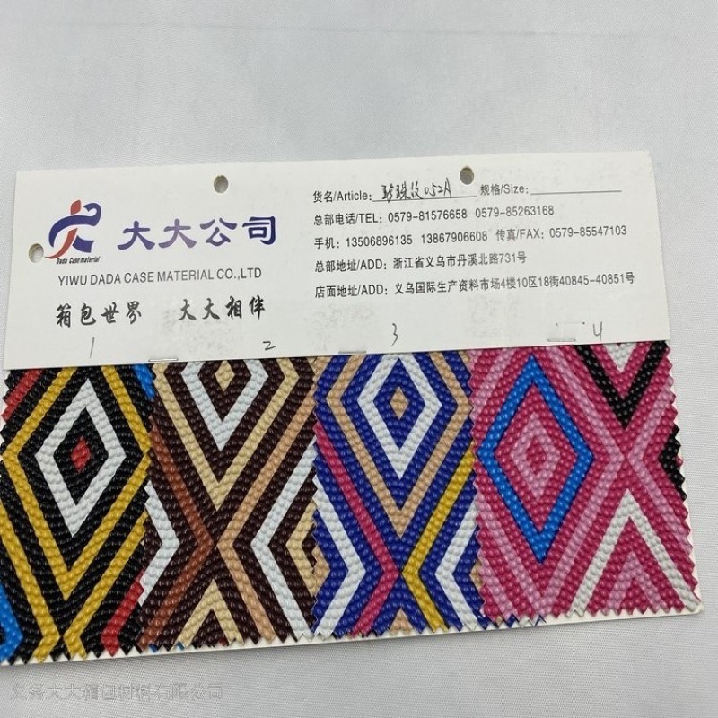 Large luggage material, Zhejiang luggage material industry leading enterprise, production and operation: leather/ pvc leather, artificial Leather, PU leather leather, pvc leather, leather printing, oxford cloth, transfer printed leather(Transfer leather), printed cloth, non-woven fabric, faille leather, satin, all kinds luggage fabric, luggage accessories, box and bag hardware accessories and other luggage materials. If you are looking leather manufacturer, leather wholesale, yiwu artificial leather information, please remember to contact us.