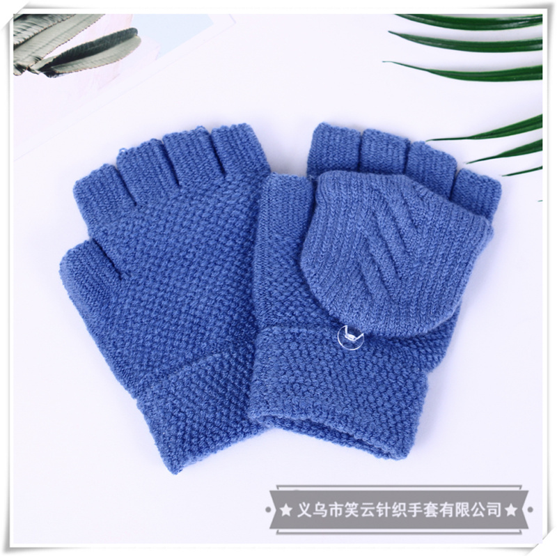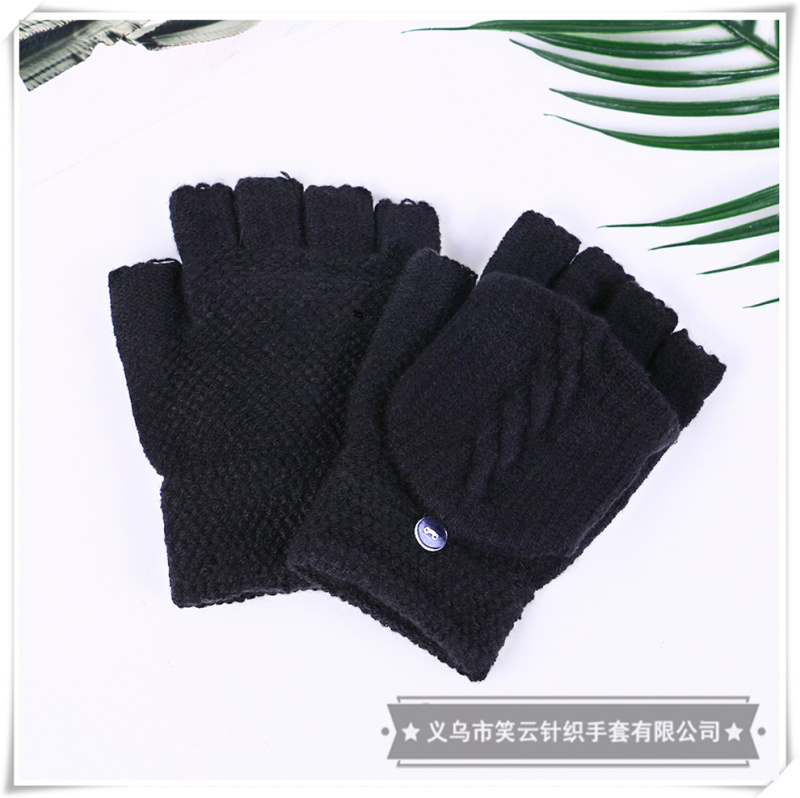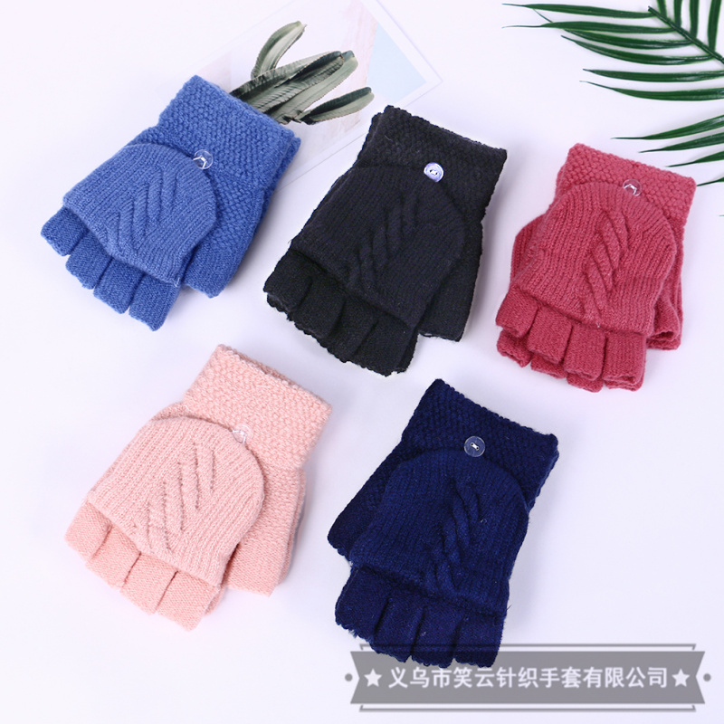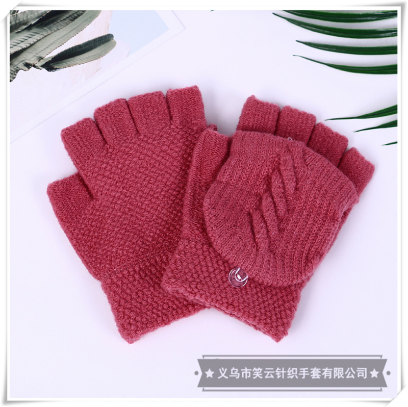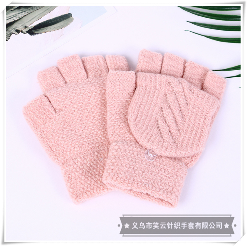 half finger gloves women's winter korean style cute student men's and women's warm plush knitted fingerless flip dual-use gloves 中文版