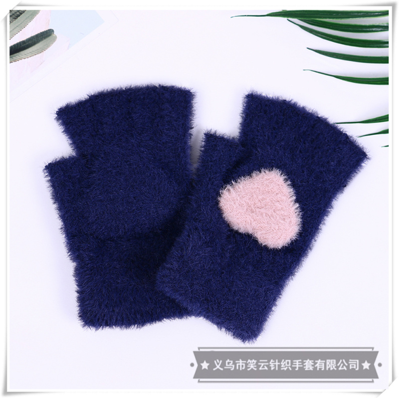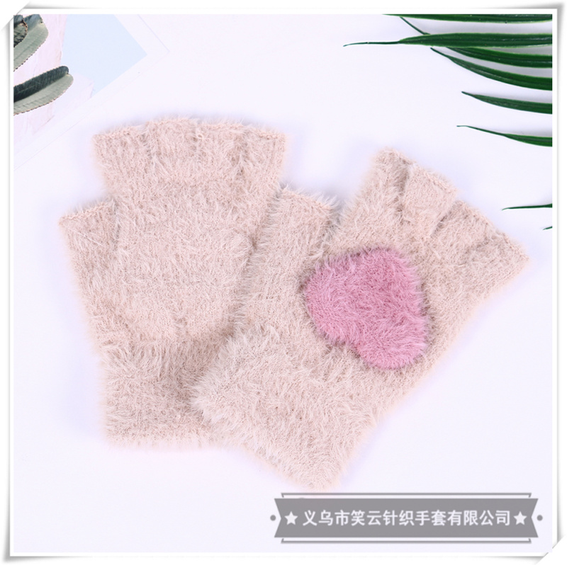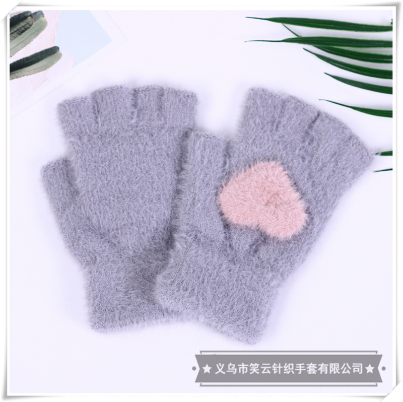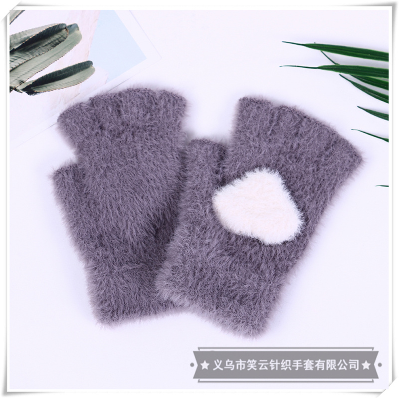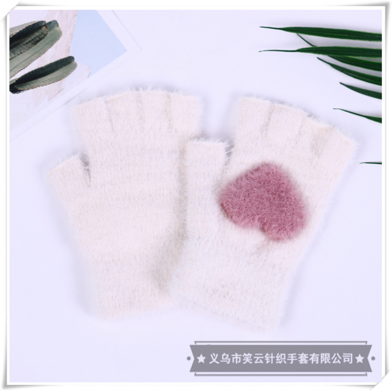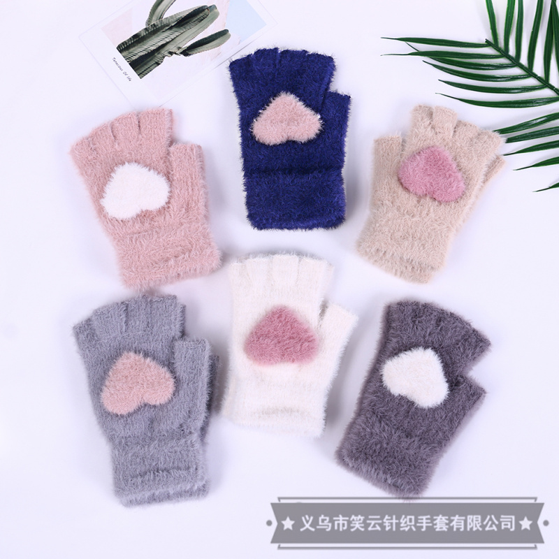 half finger gloves for women autumn winter korean style cute imitation mink love warm student writing furry girl heart 中文版