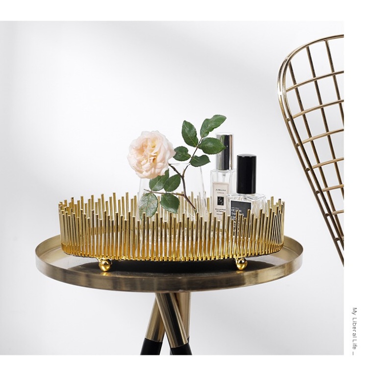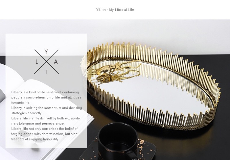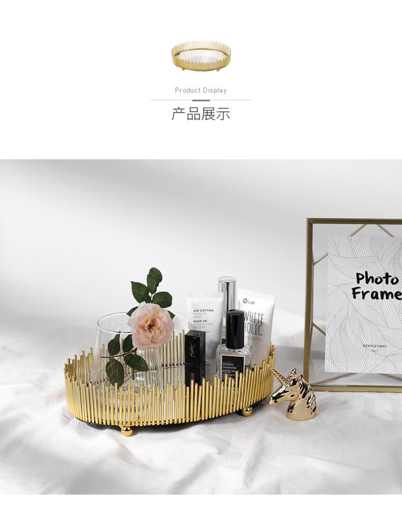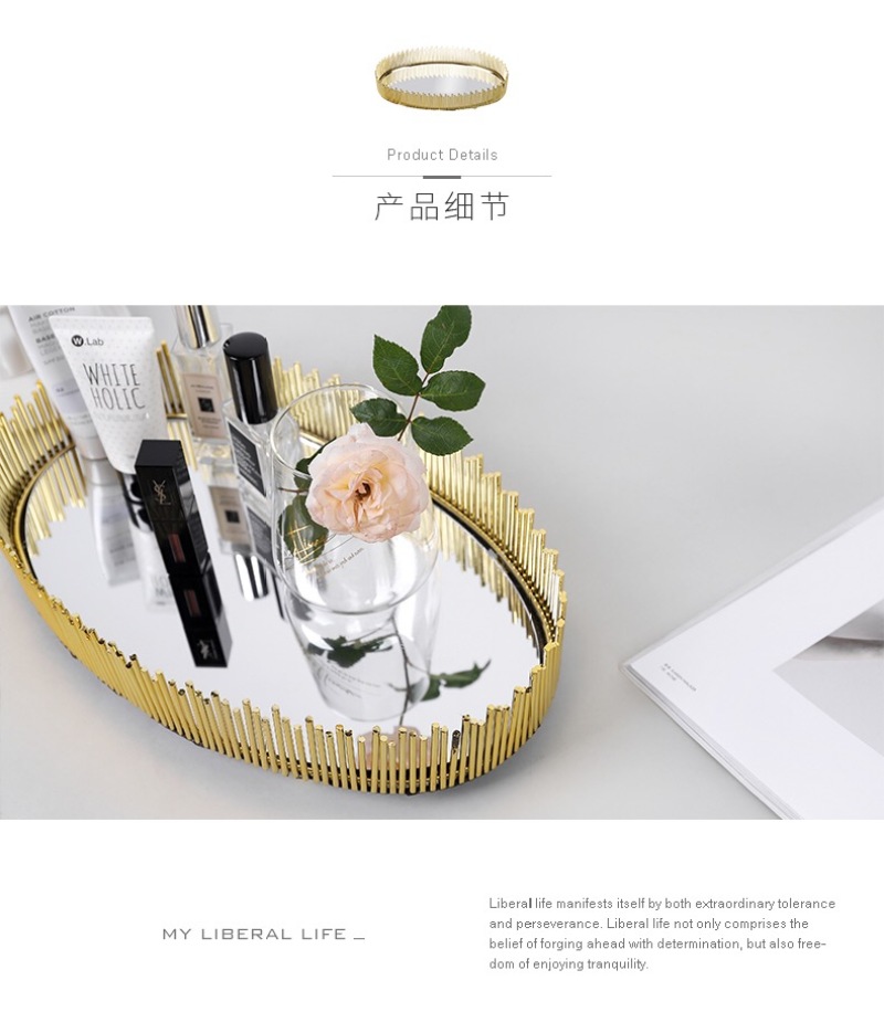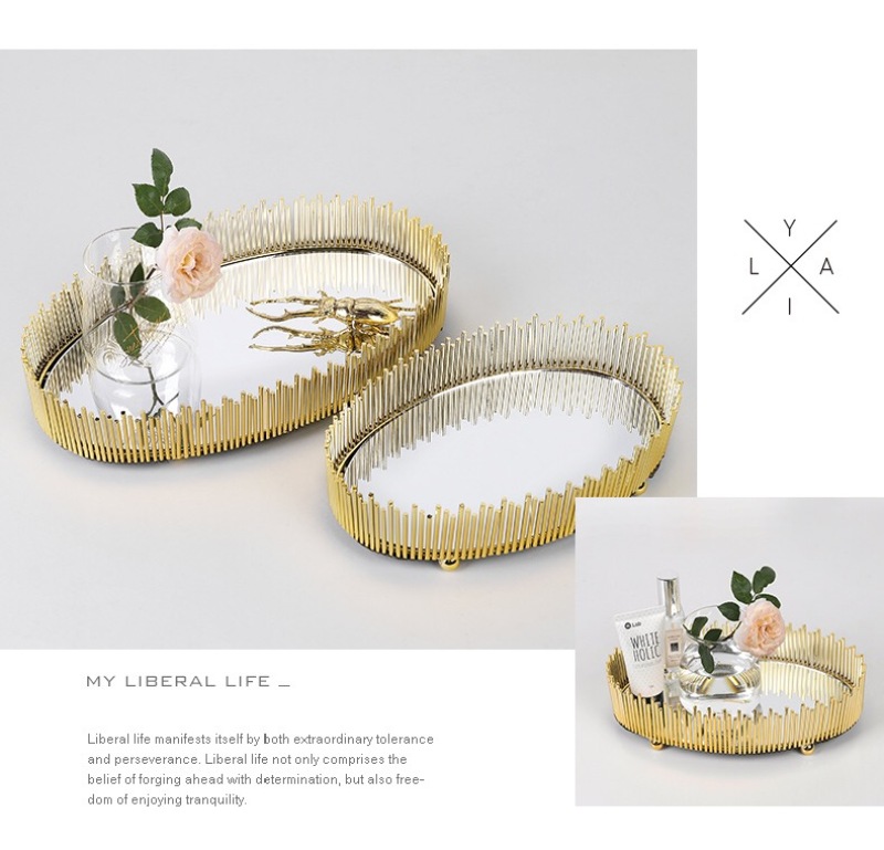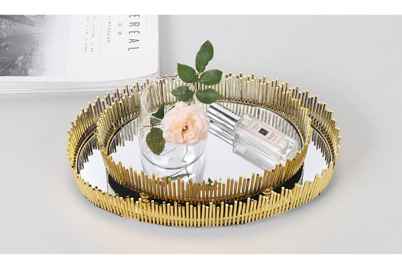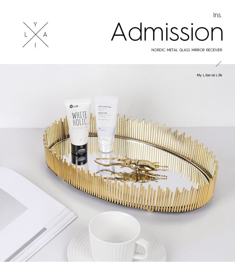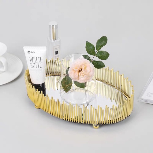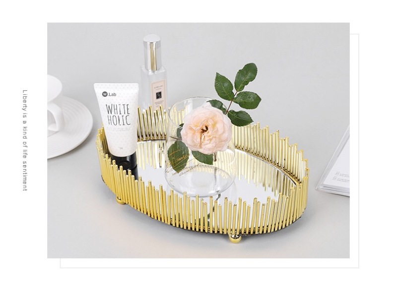 nordic simple light luxury metal mirror decorative tray storage box cosmetics jewelry box desktop display box ornaments
