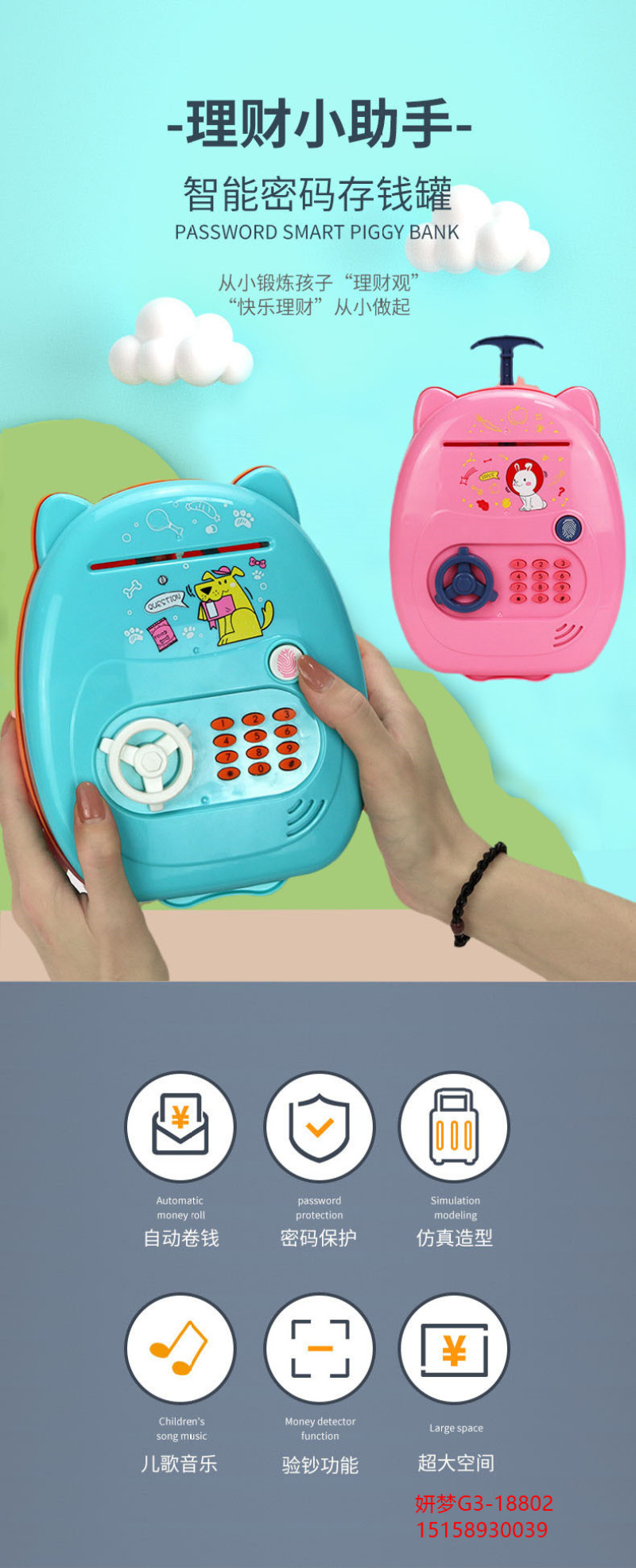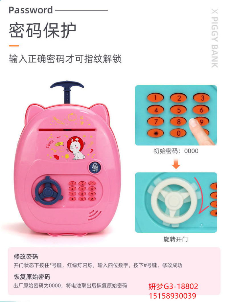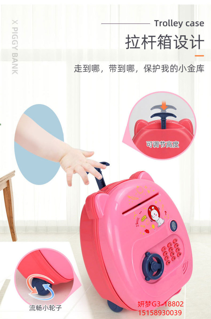 Children's Trolley Case Piggy Bank Desirable May Be Only-in-No-out Internet Celebrity Fingerprint Password Savings Girls Cute Creative