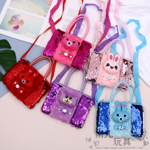 Children shoulder Bag Women's Messenger Bag Fashion Princess Girl Sequined Plush Cute Three-Dimensional Animal Shoulder Bag