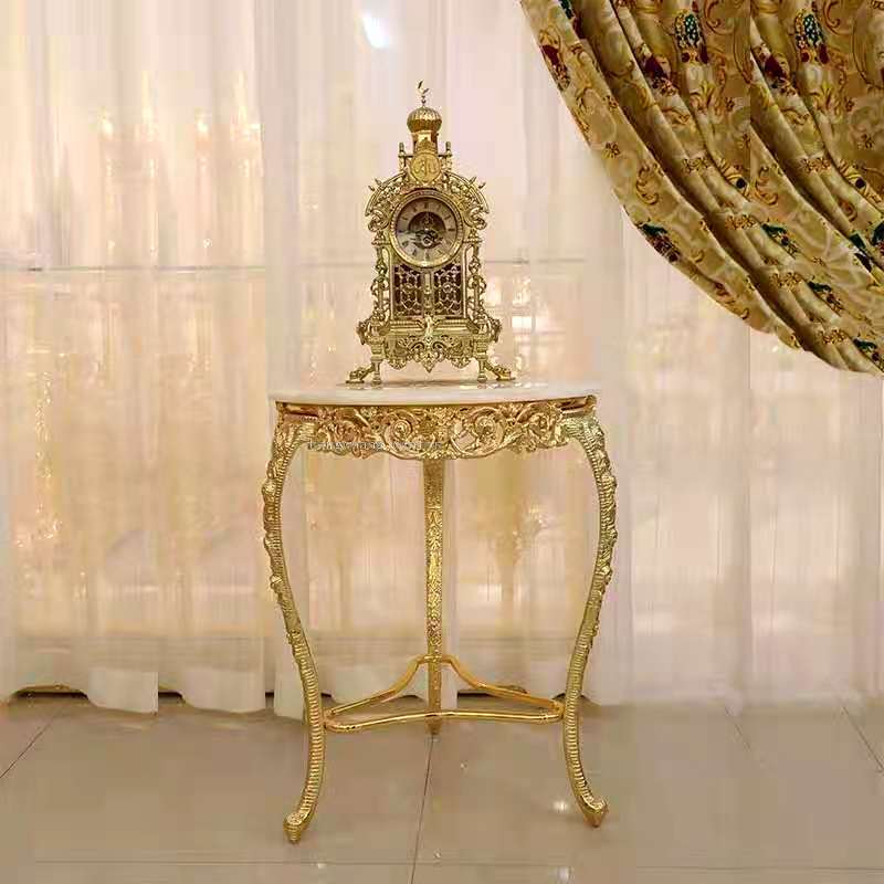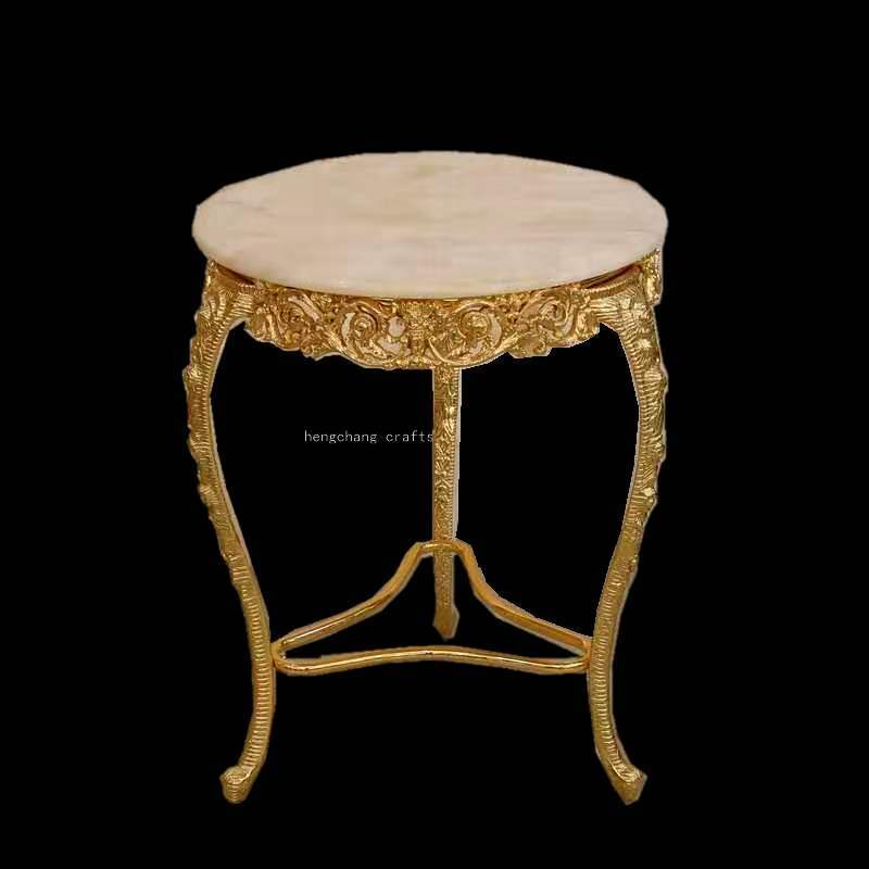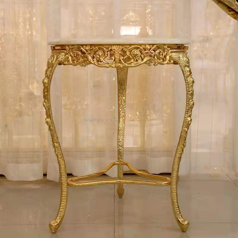 Barent Italy Baroque Style Alloy Copper Plated K Gold Color Heavy Industry White Marble Leisure Corner Table round Tea Table 中文版