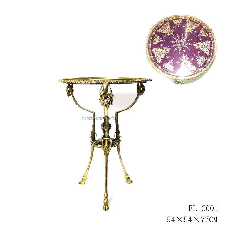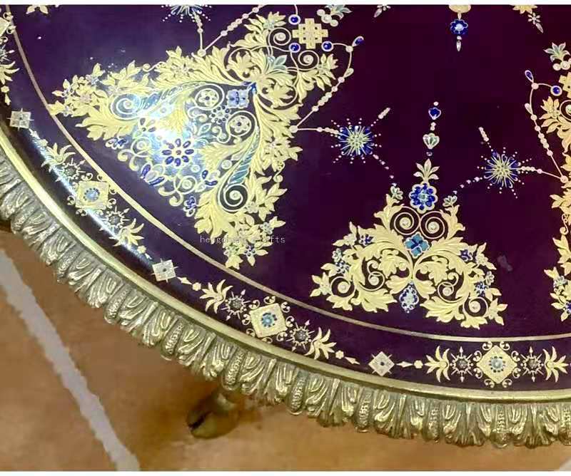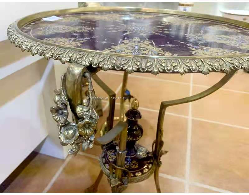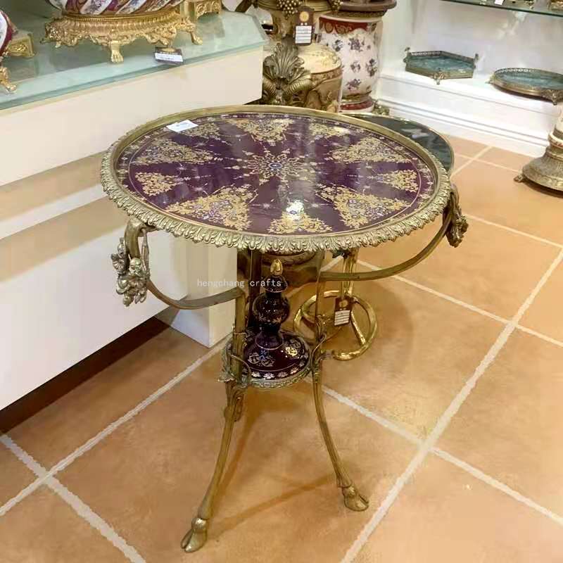 European-Style Retro Copper Small Table round Tea Table Porcelain Hand Painted with Copper Red Blue Metal Copper Corner Table Living Room Sofa 中文版