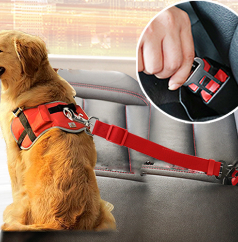 Pet safety belt for cars with adjustable and retractable lead for dog car seat fixation