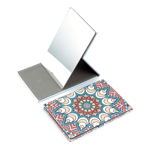 Colorful Leather Custom Digital Printing Metal Stainless Steel Mirror Easy to Carry Cosmetic Mirror 中文版