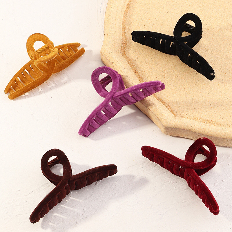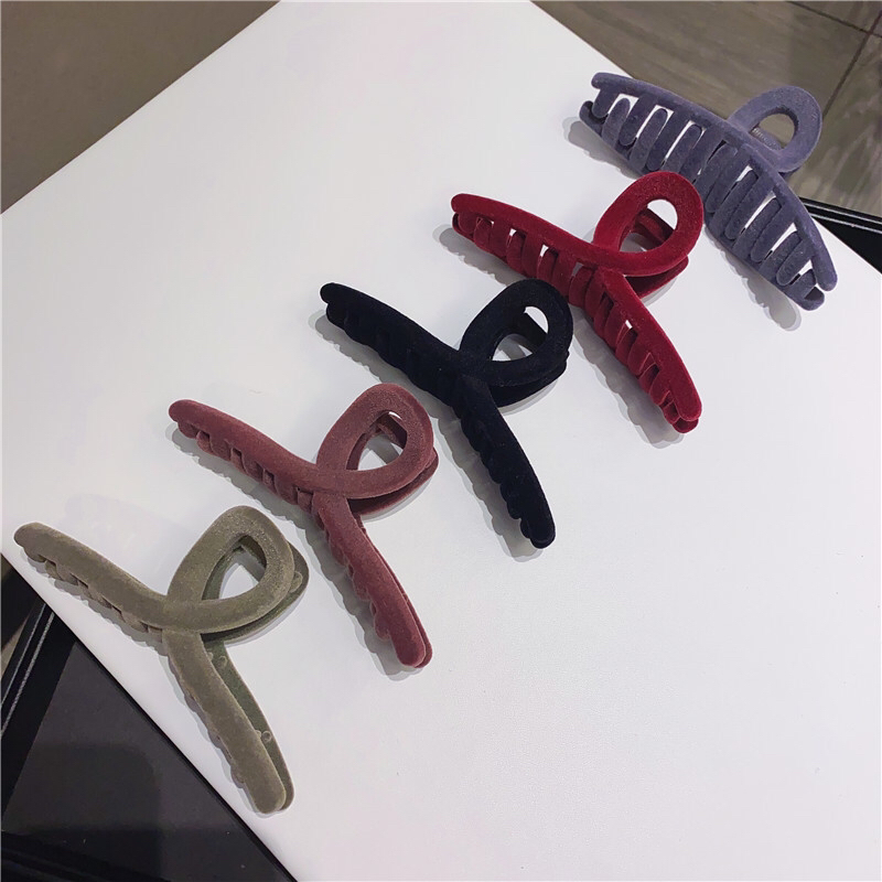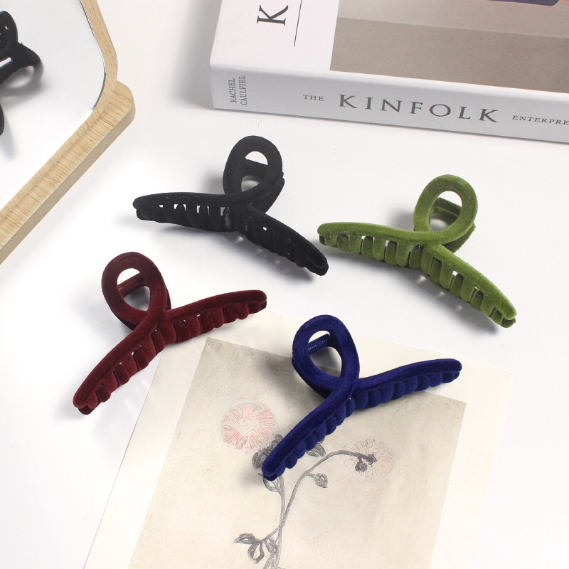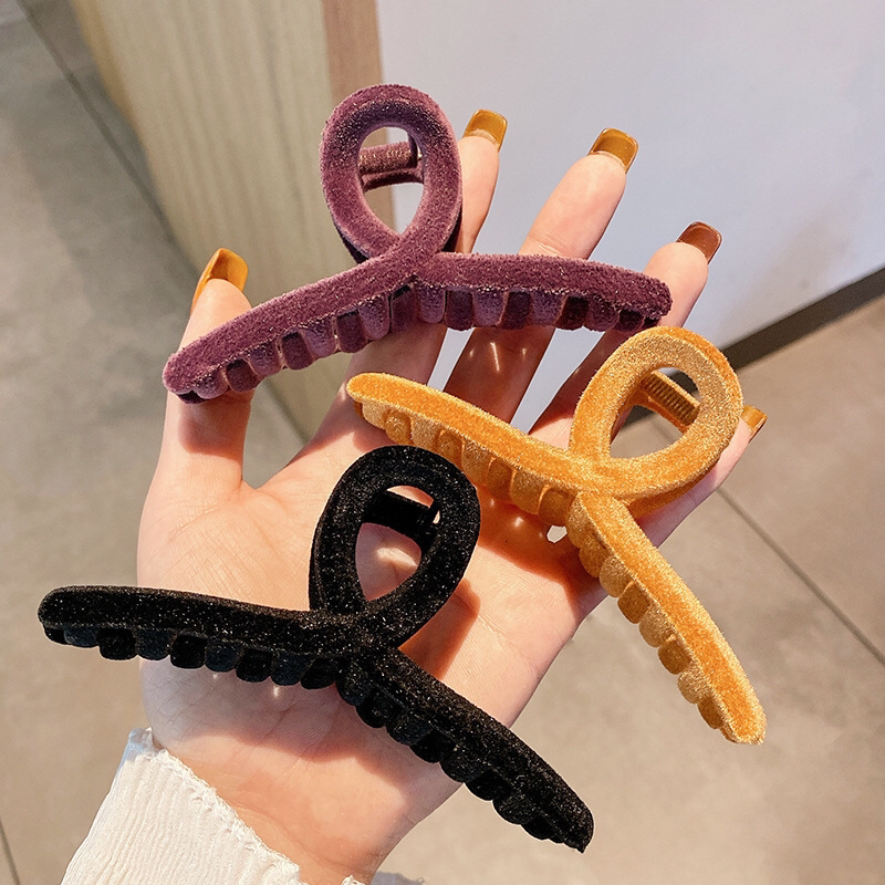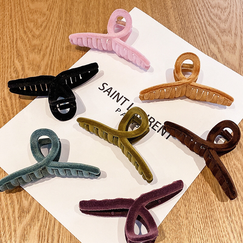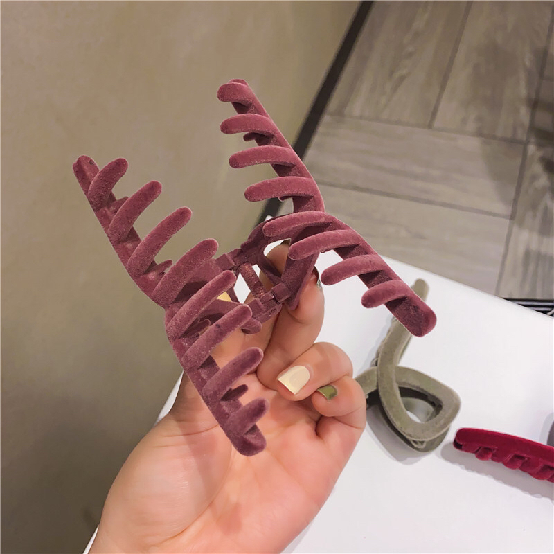 autumn and winter imported retro high-grade flocking morandi velvet temperament korean shark clip back head clip grip 中文版