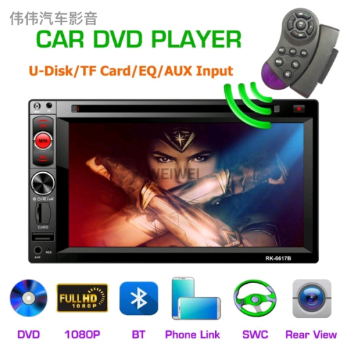 Car dual-fixed DVD touch screen Bluetooth card TF USB mobile phone interconnection reversing image, support mobile phone interconnection, Bluetooth, multi-language, Dvd,mp5,mp3,Fm...