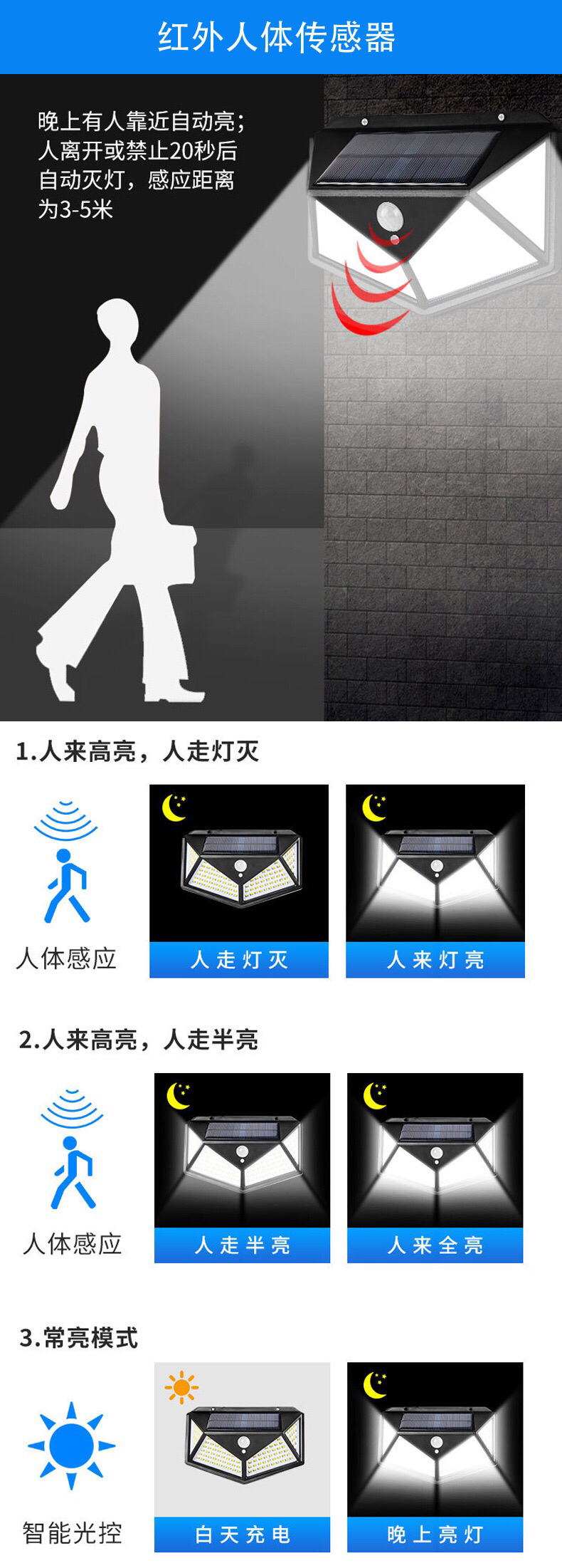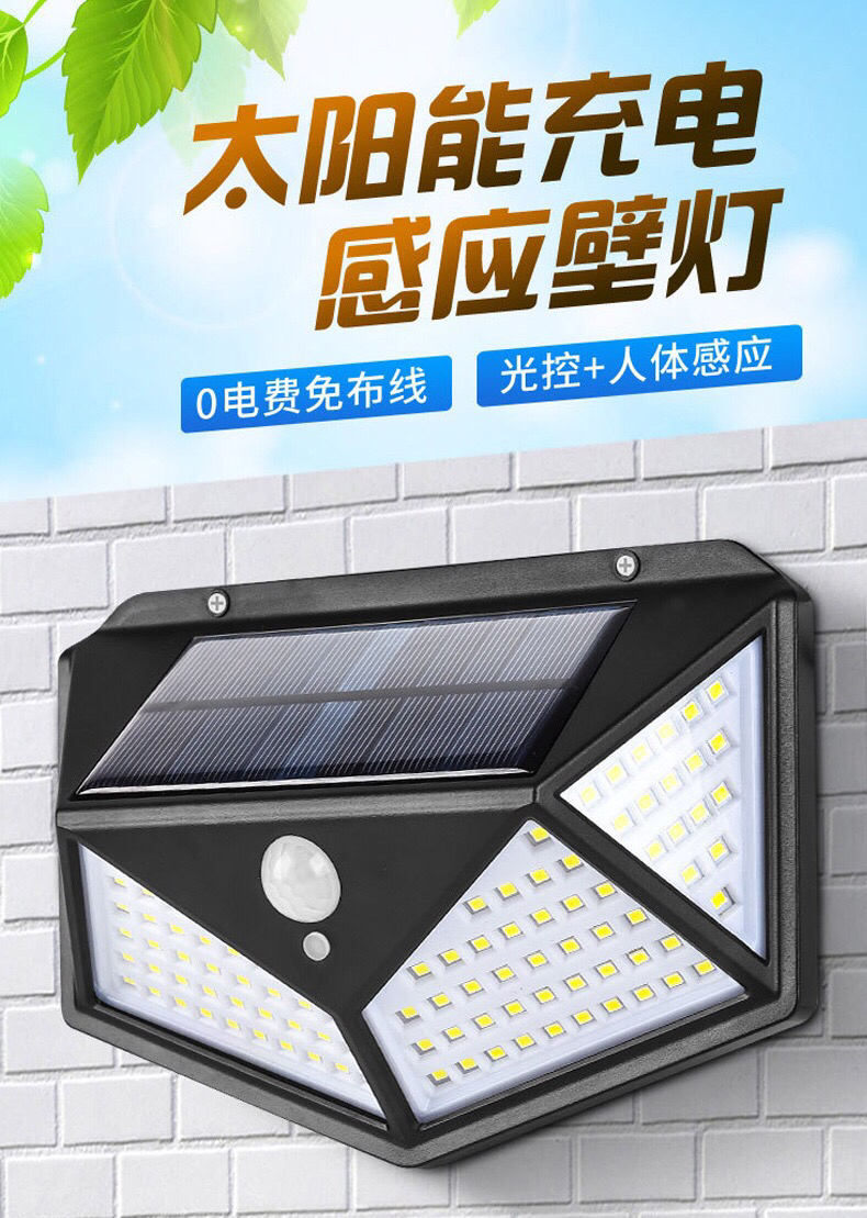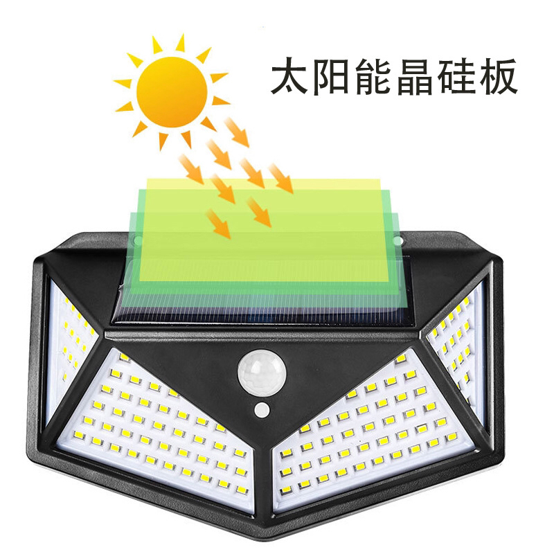 Cross-Border New Arrival Solar Wall Lamp Human Body Induction Garden Lamp Outdoor Super Bright Solar Lamp 100L