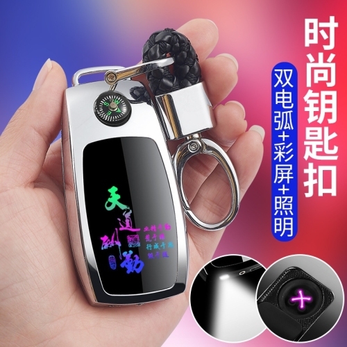 New Product Creative Car Logo Multi-Functional Keychain USB Charging Pulse Dual Electric Arc Lighter with Compass 中文版