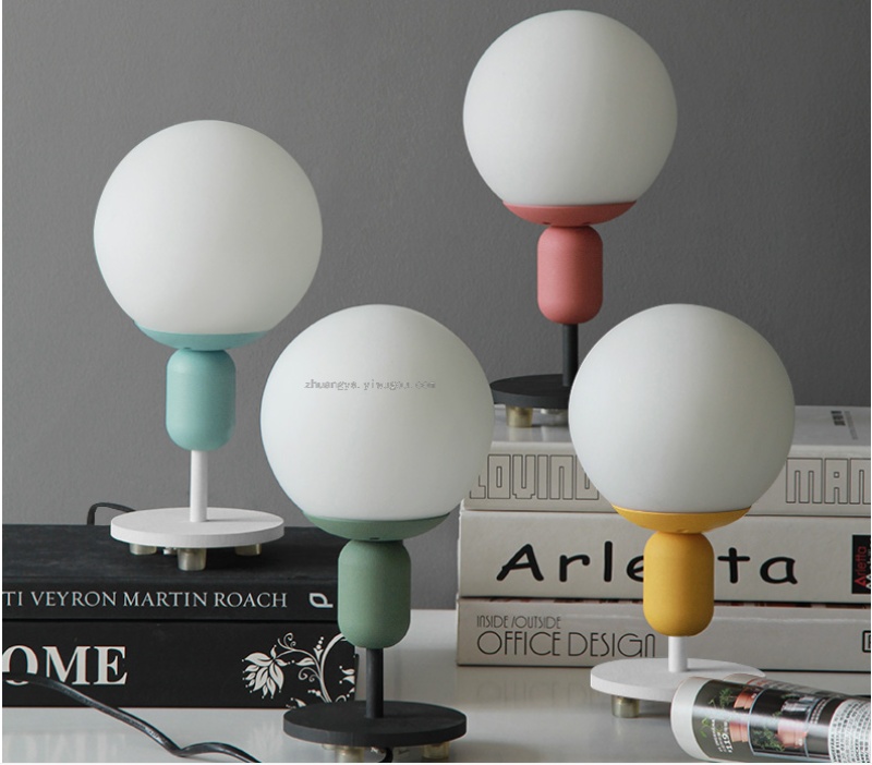 special simple creative nordic children's room bedside lamp bedroom study macaron ball table lamp 中文版