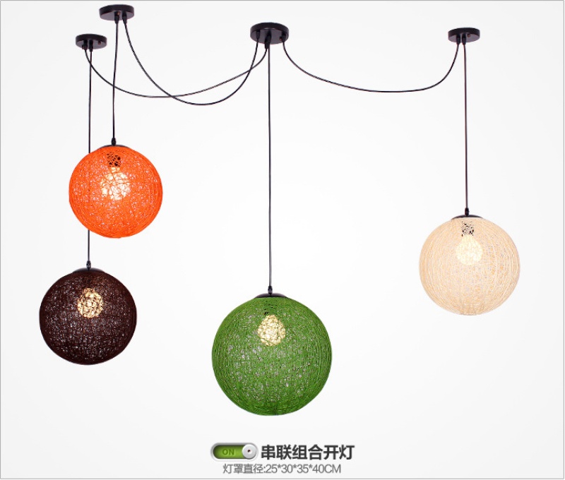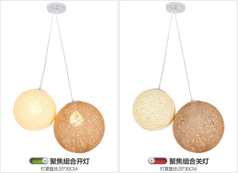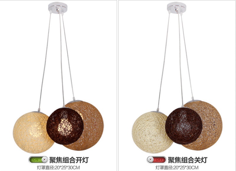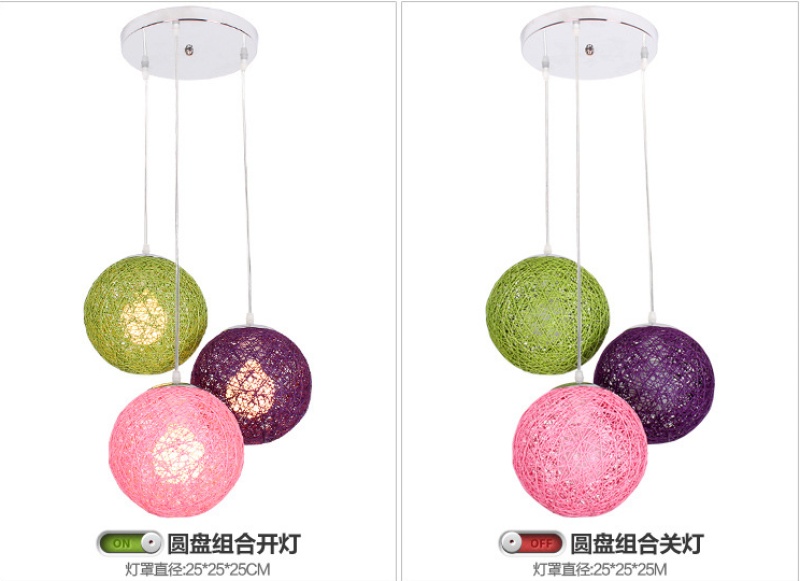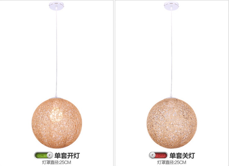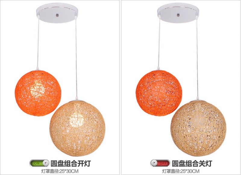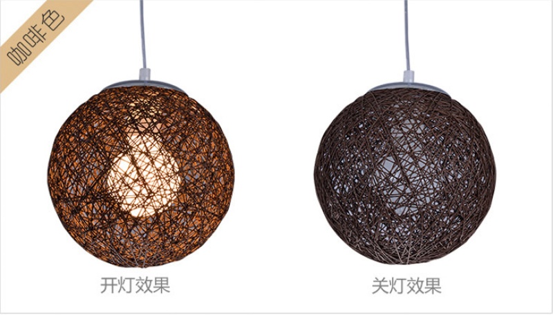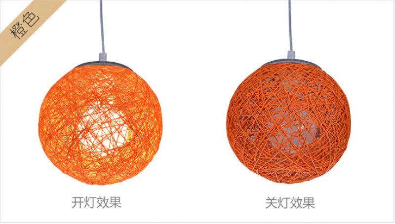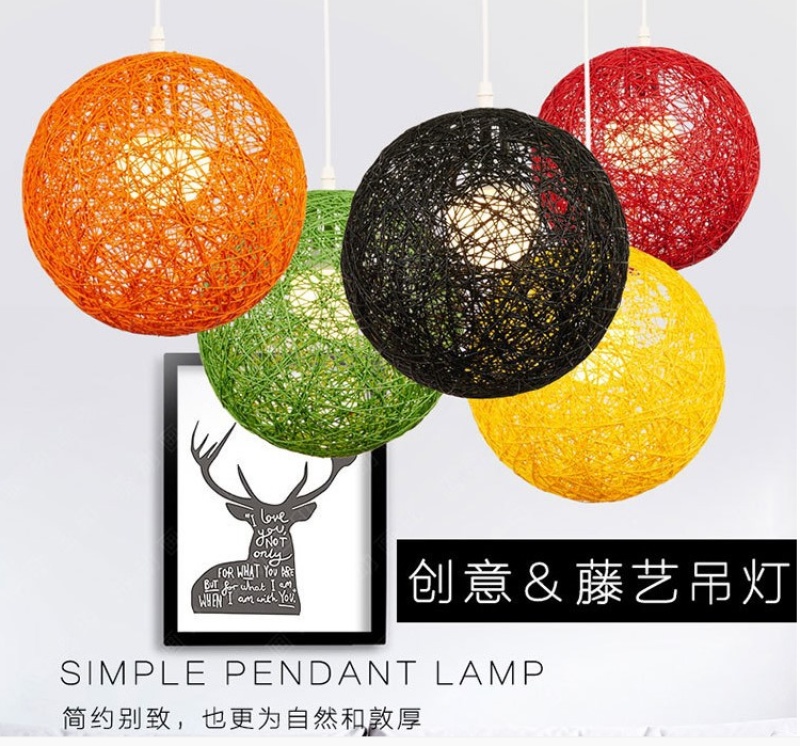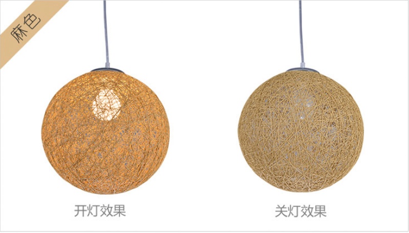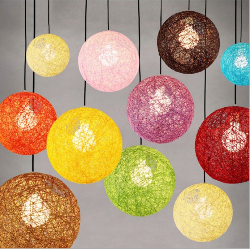 creative hemp ball chandelier chinese and western restaurant round spherical chandelier hand-woven color hydrangea single head rattan ceiling lamp 中文版