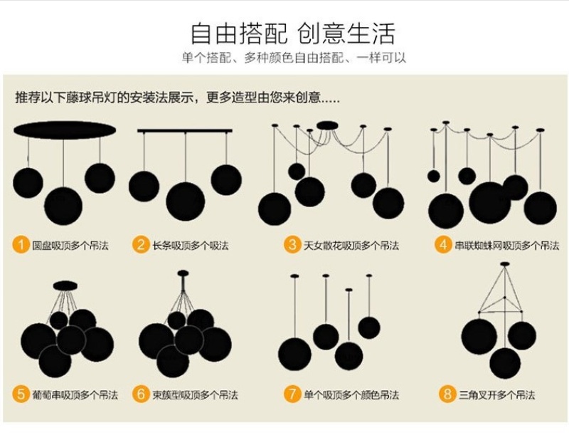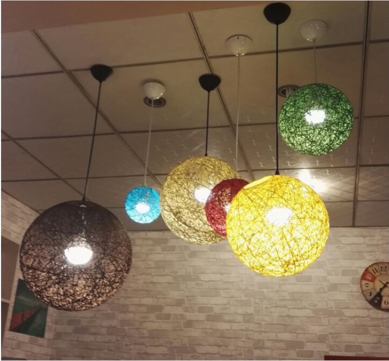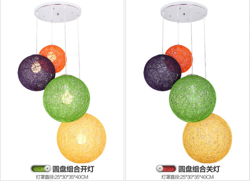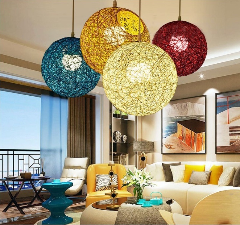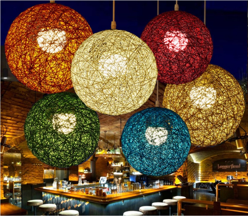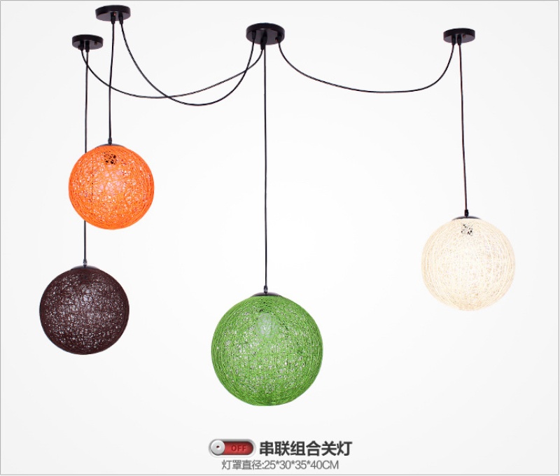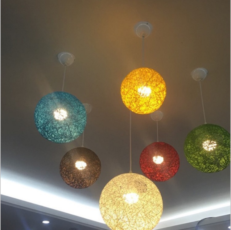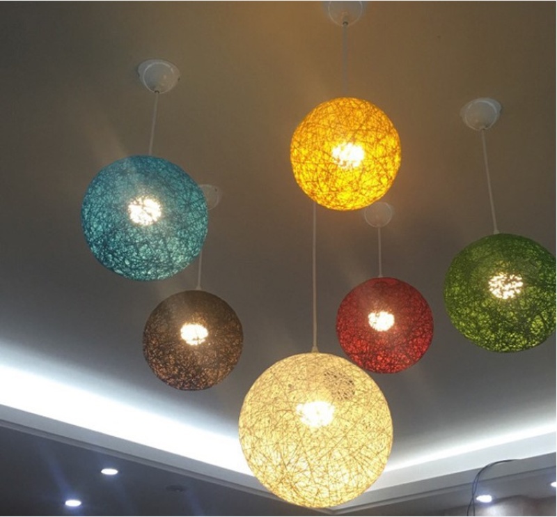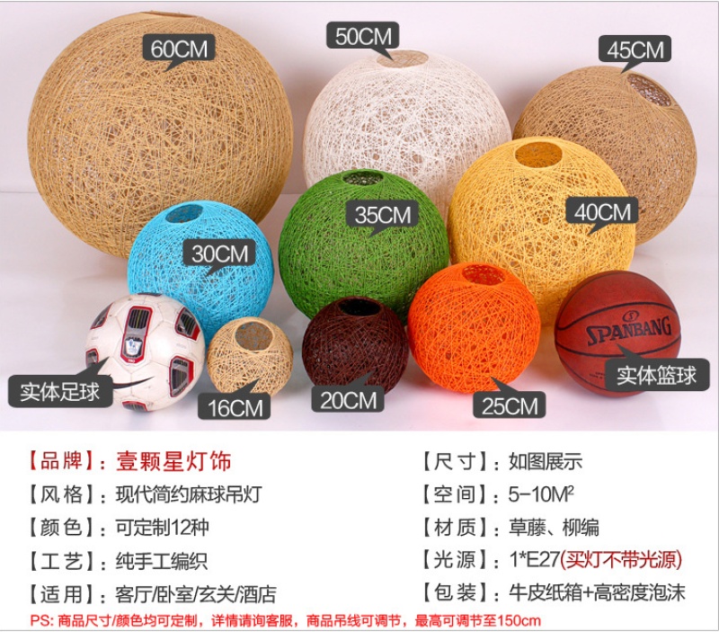 creative hemp ball chandelier chinese and western restaurant round spherical chandelier hand-woven color hydrangea single head rattan ceiling lamp 中文版