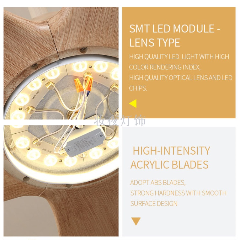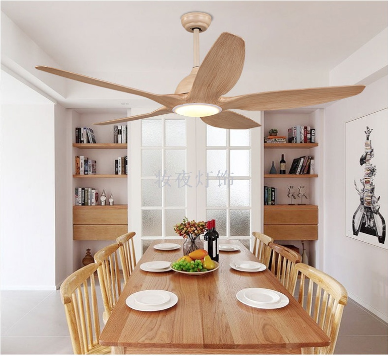 nordic fan lamp log stylish and personalized modern living room chandelier bedroom dining room solid wood led electric fan chandelier 中文版