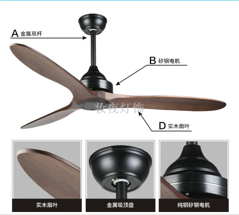 export engineering lamp-free ceiling fan simple living room restaurant home ceiling fan solid wood fan american fan-style ceiling lamp 中文版