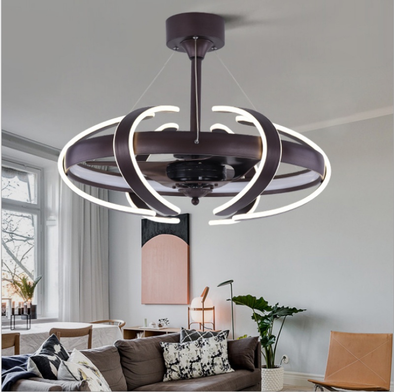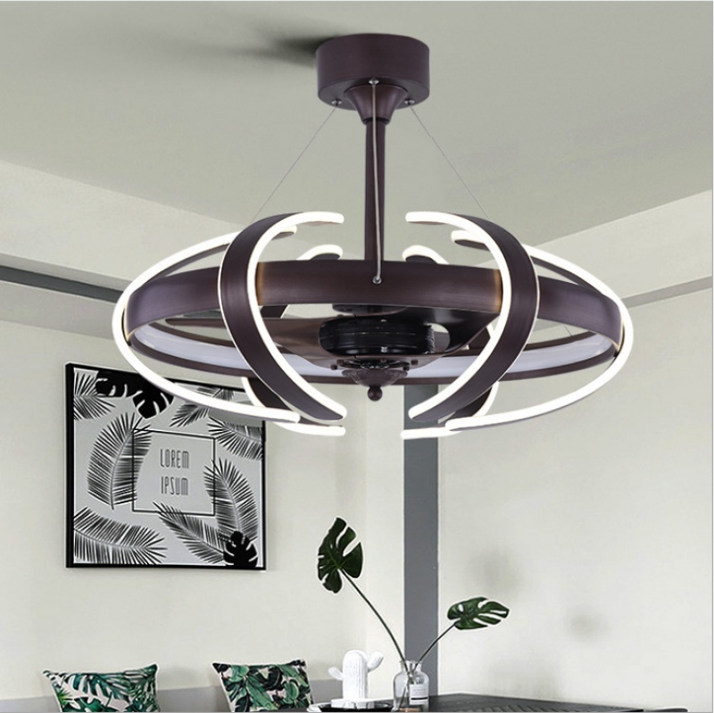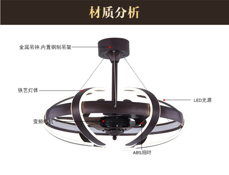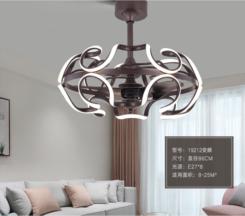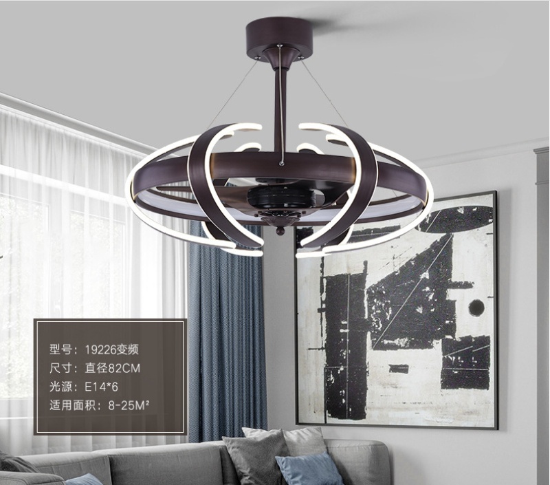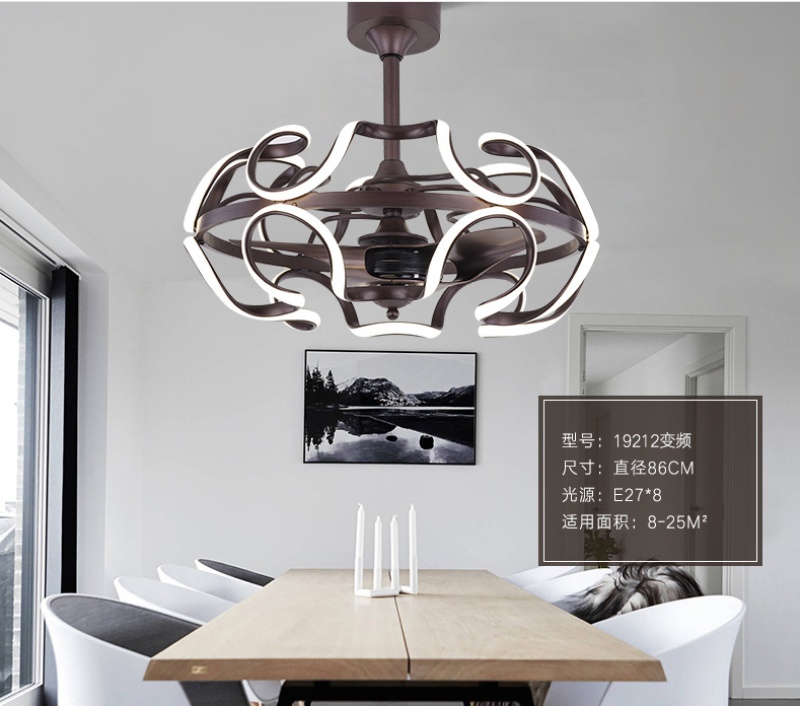 modern dc frequency conversion electric fan lamp personalized creative bedroom fan-style ceiling lamp dining room round chandelier new fan lamp 中文版