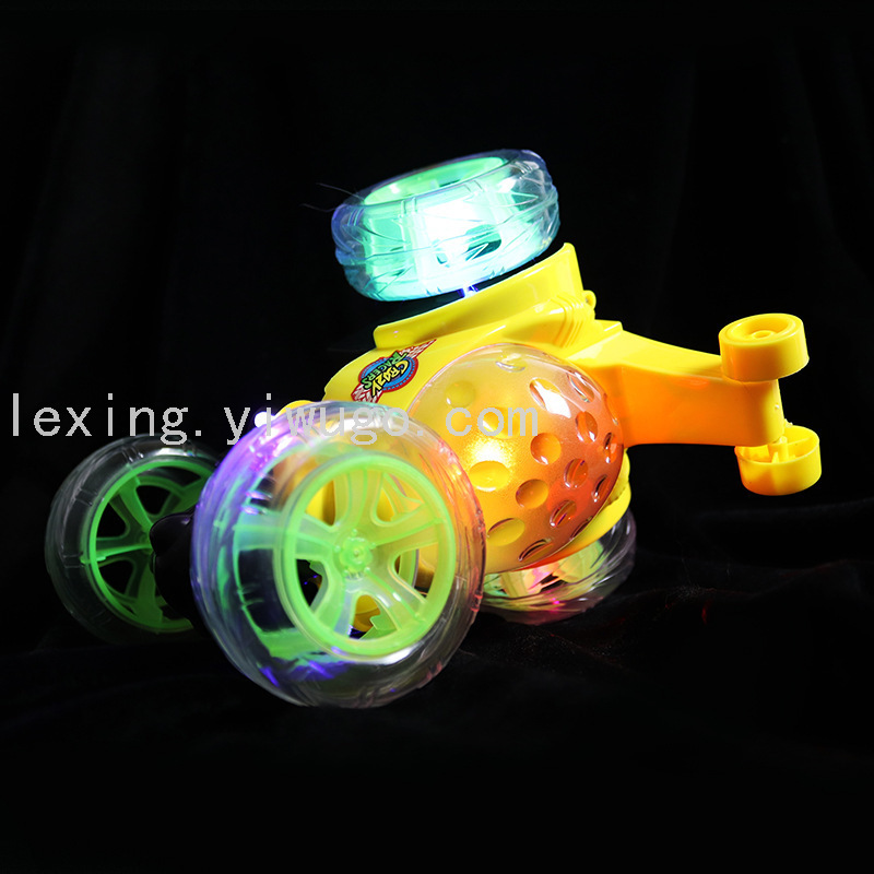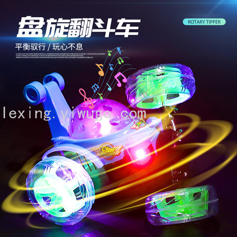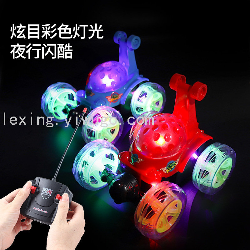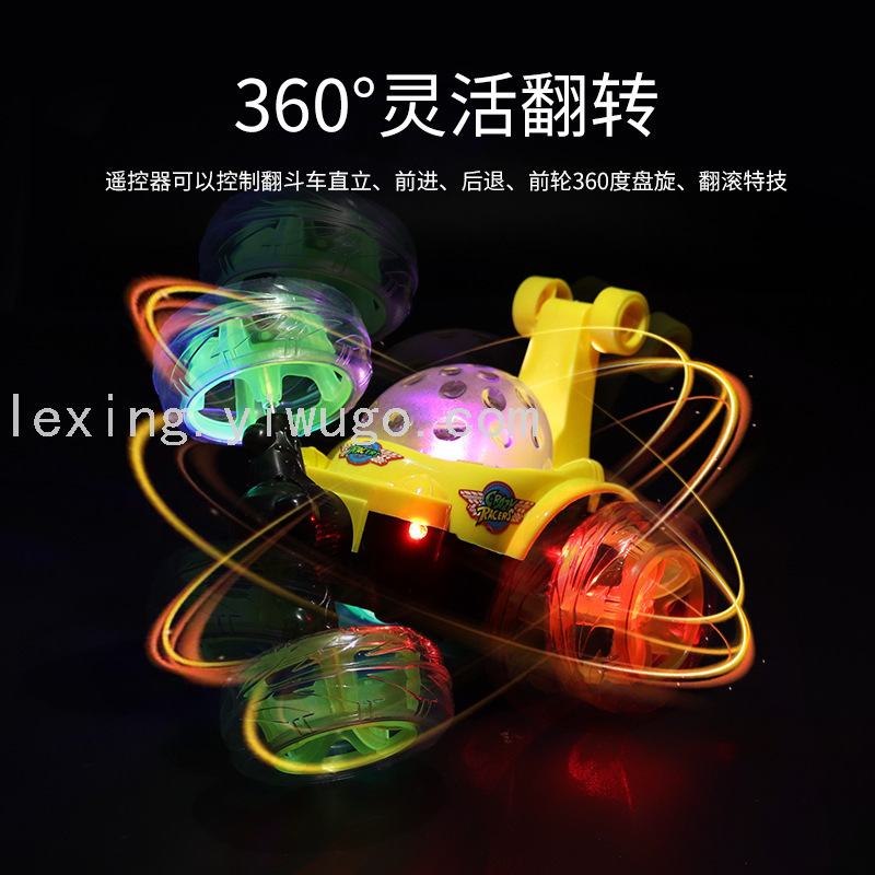 new stunt tilting wireless remote control cool light music charging off-road 360-degree rotating children's toy car 中文版