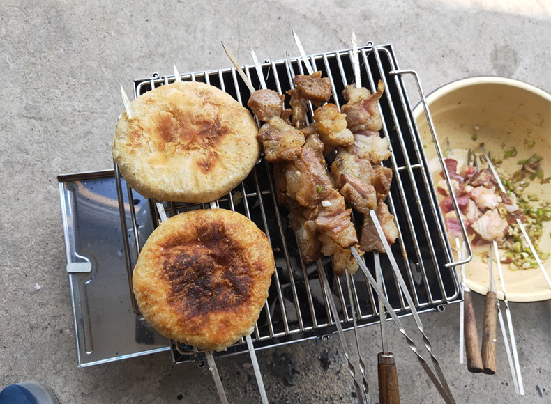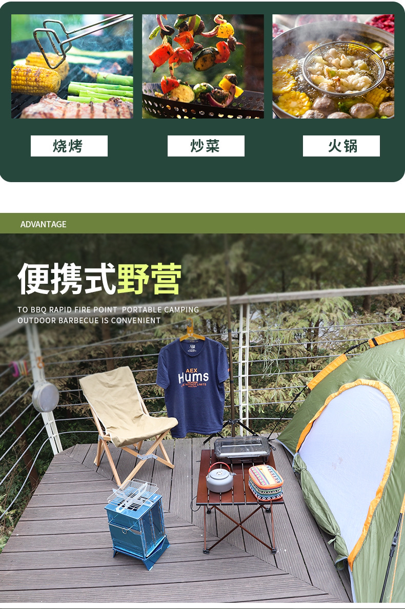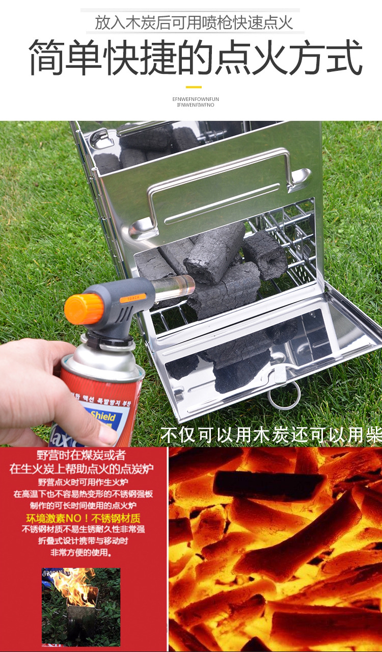 outdoor portable mini folding stainless steel barbecue grill, essential artifact for travel picnic company activities 中文版