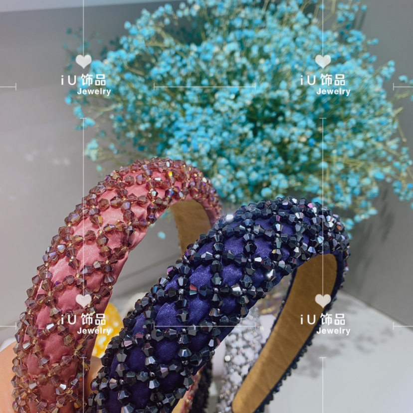 factory direct sales mesh crystal headband women's simple elegant wide edge fashion hand-stitched sponge european and american headband 中文版