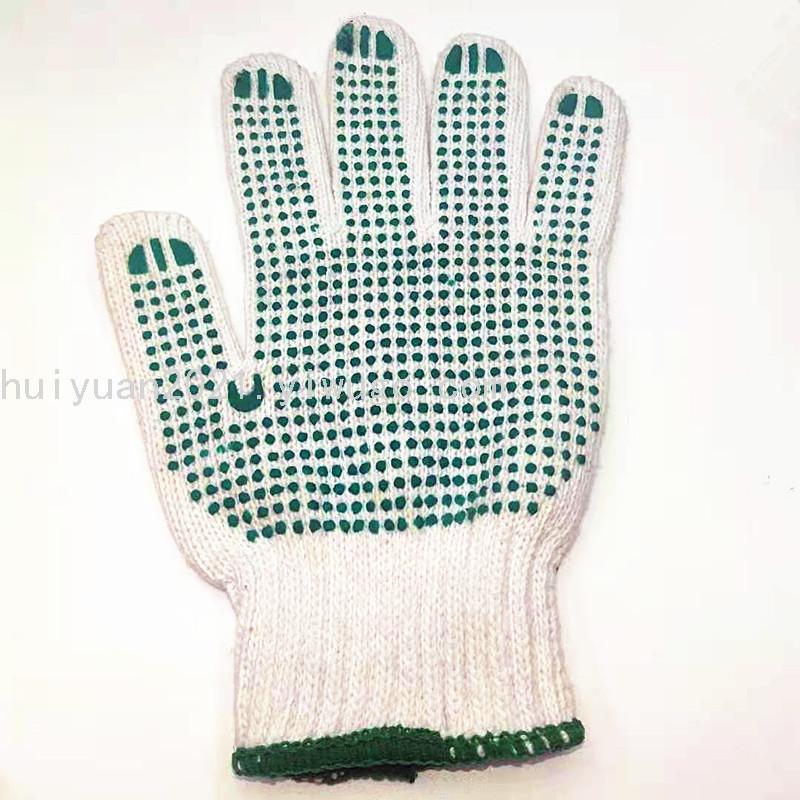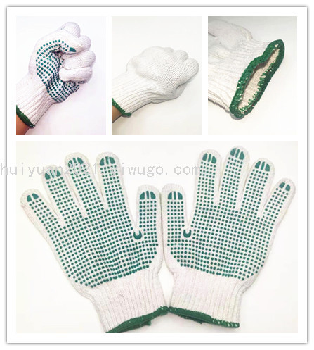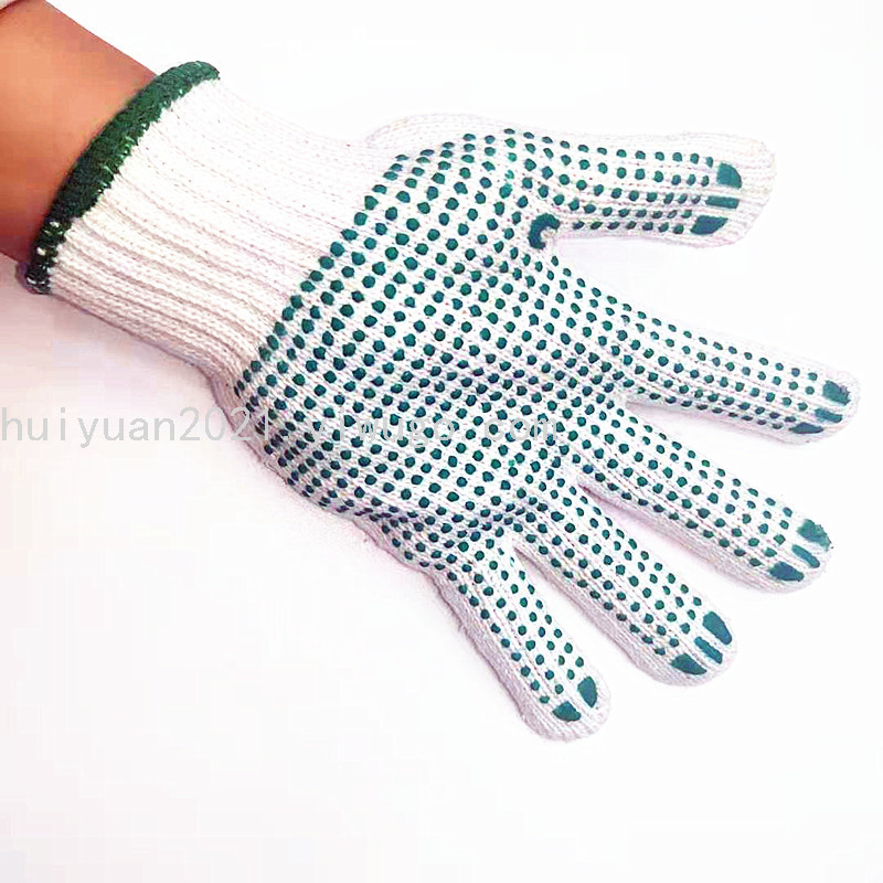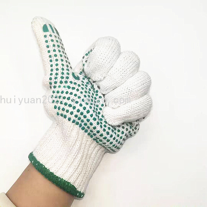 cotton green dot rubber gloves, cotton yarn work wear-resistant gloves