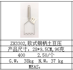[huan da] european-style steel handle potato press