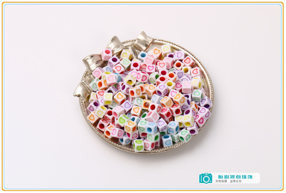 acrylic large hole square beads heart love heart pattern squares diy children string beads materials 中文版