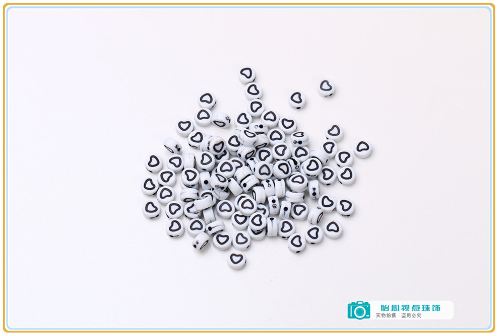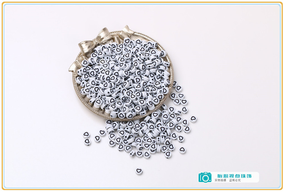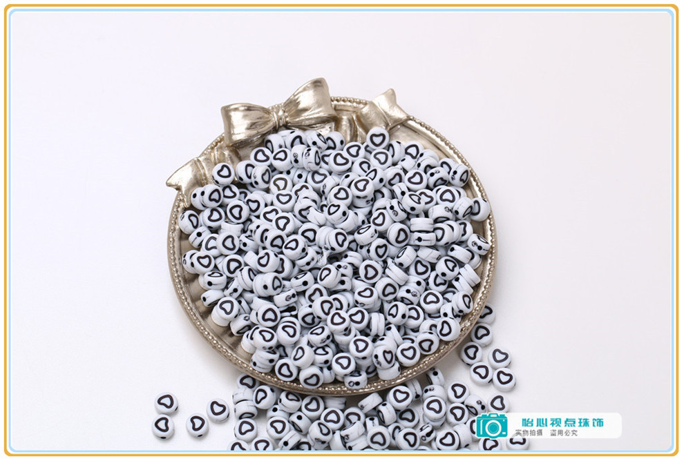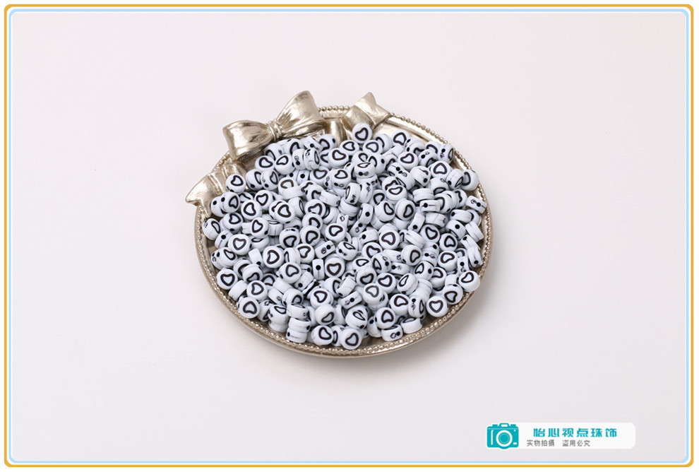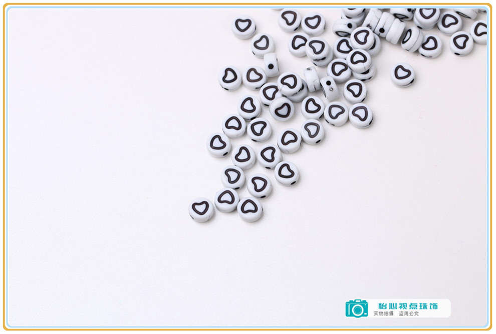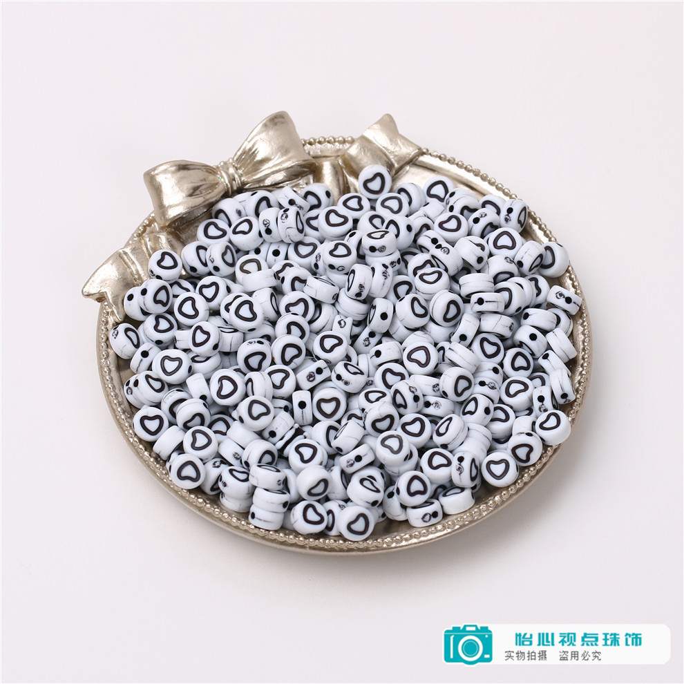 diy ornament accessories acrylic round flat round loose beads white-bottomed black symbol beads diy bracelet string beads materials 中文版