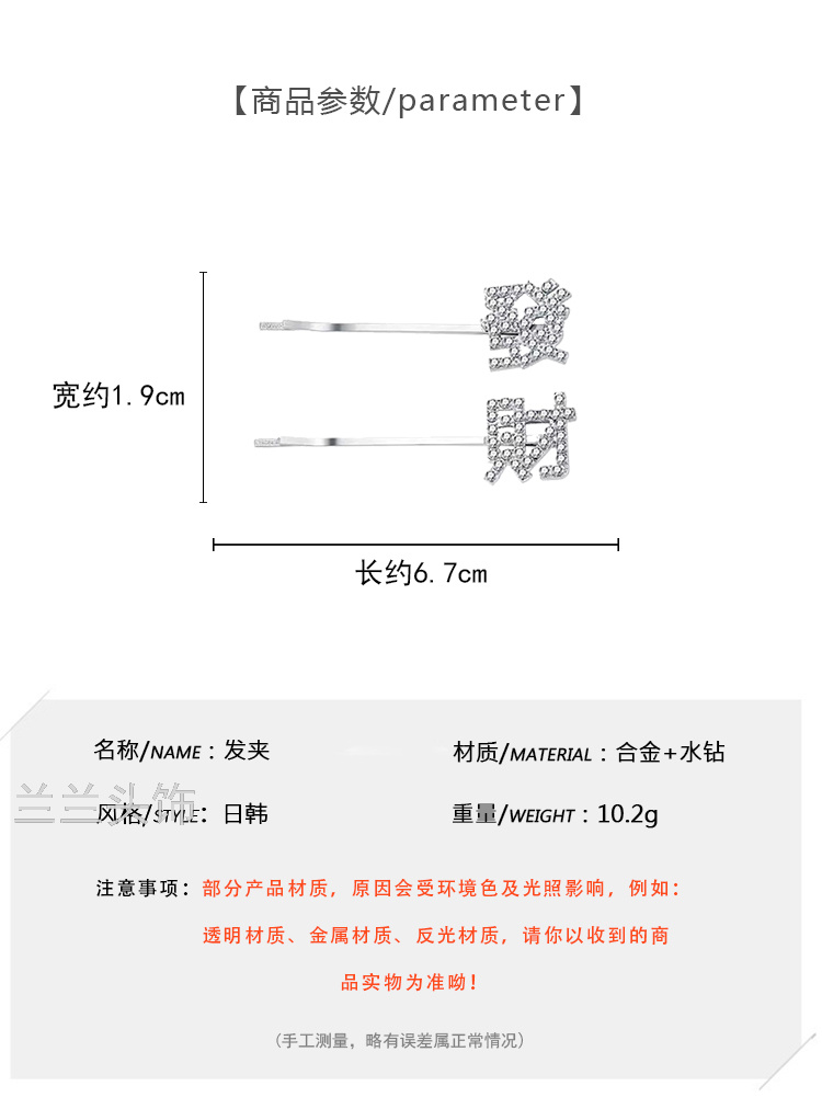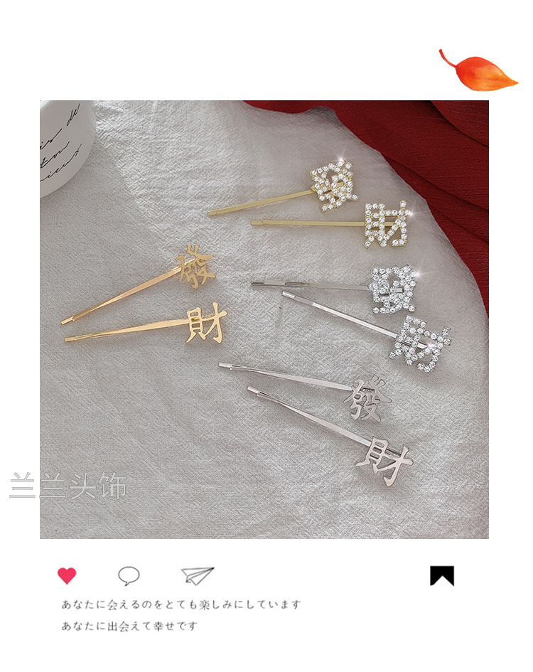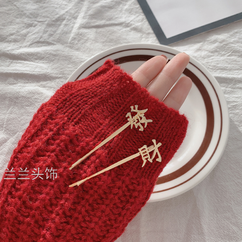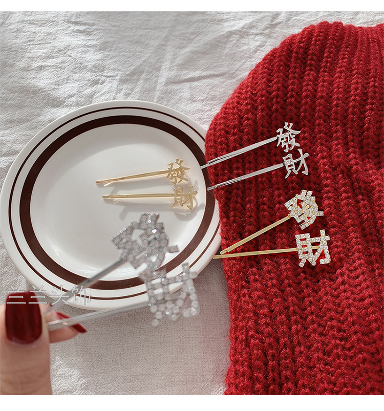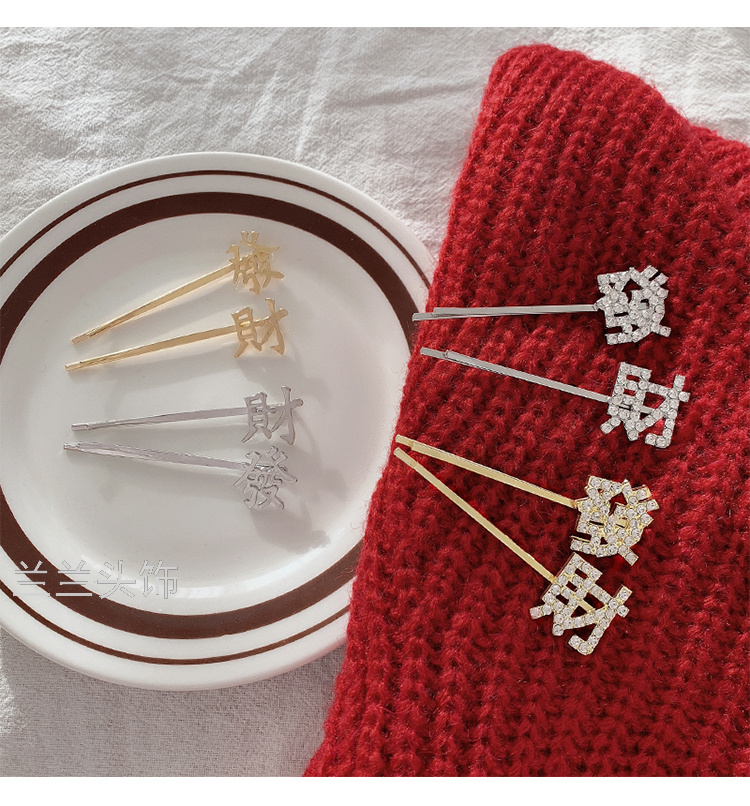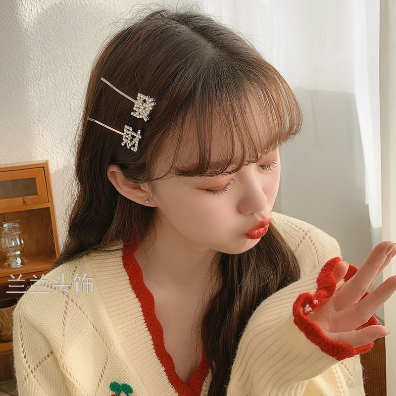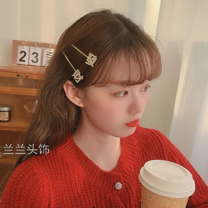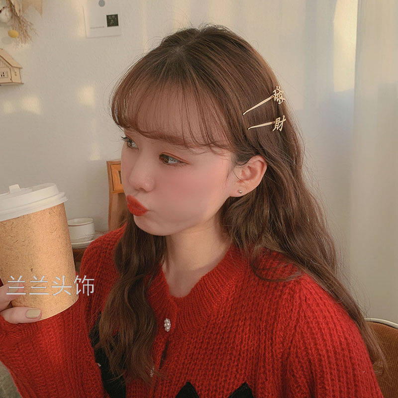 simple metal fortune barrettes girl side fringe bobby pin korean net red top clip headdress hairpin side clip 中文版