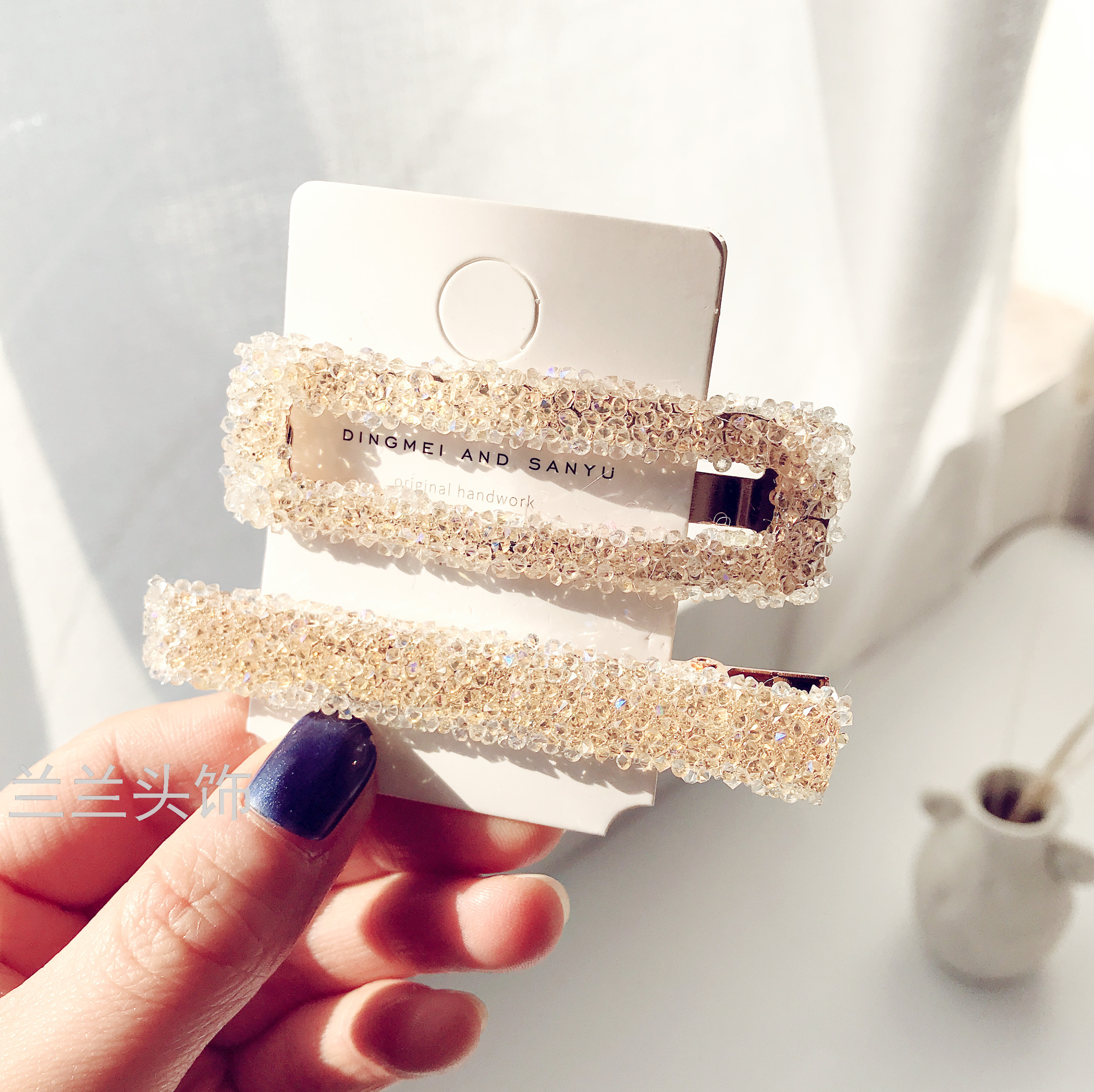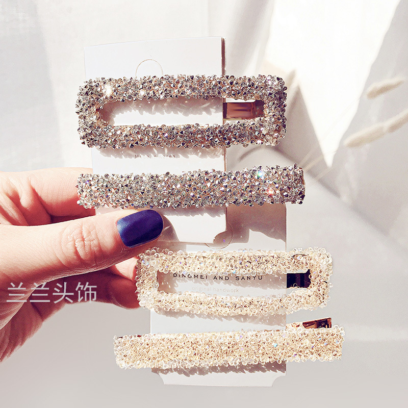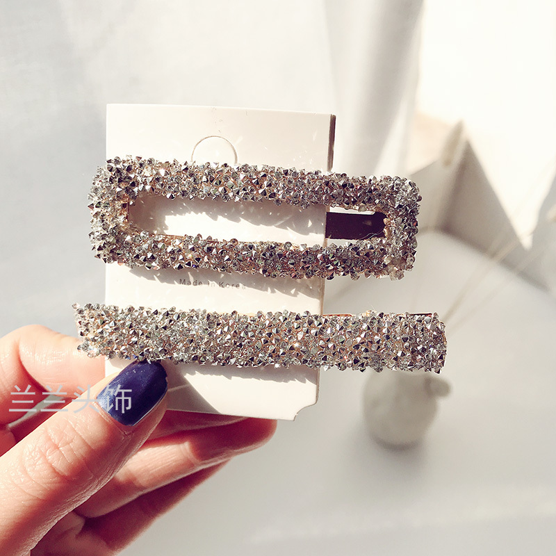 dongdaemun crystal bb clip 2 pack light luxury super flash girls' hairpin word clip internet celebrity ins hairpin fringe clip 中文版