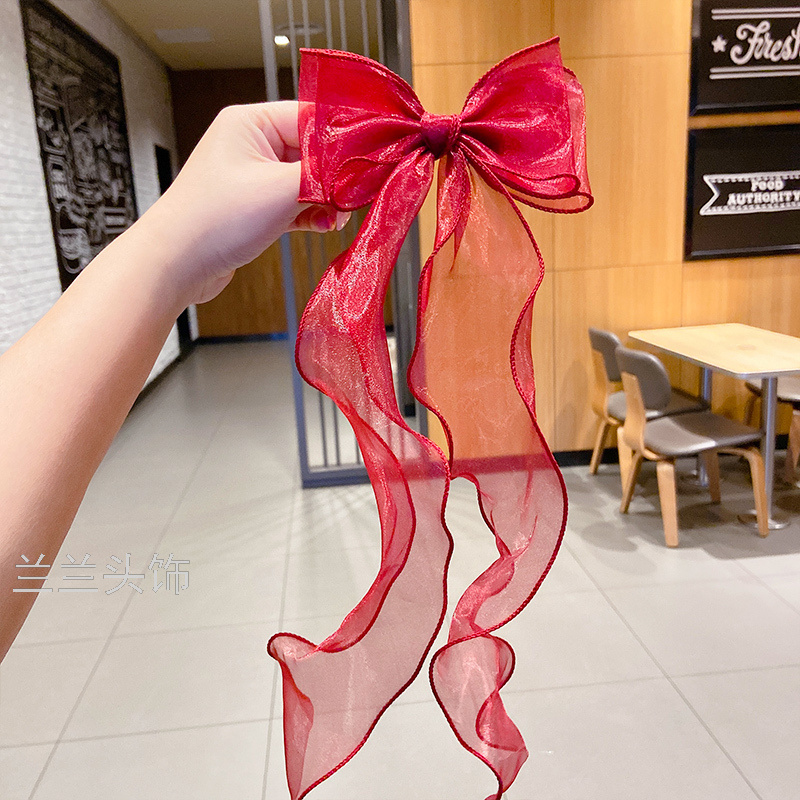 red big bow long streamer internet influencer hair clip women's clip ribbon headdress korean top clip hairpin hair accessories hair ring 中文版