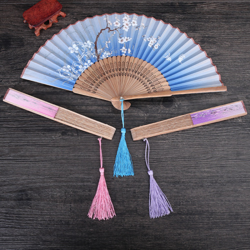 The handle of the fan is made of top-grade green bamboo, and the fan surface is made of high-fidelity silk fabric.