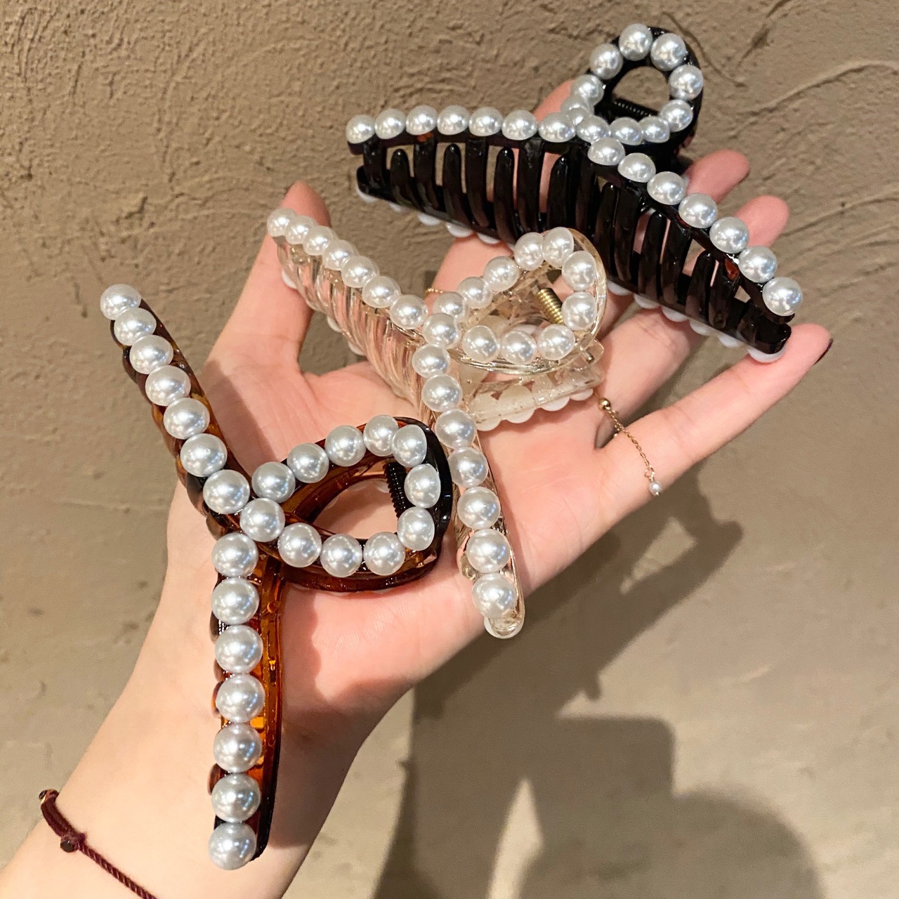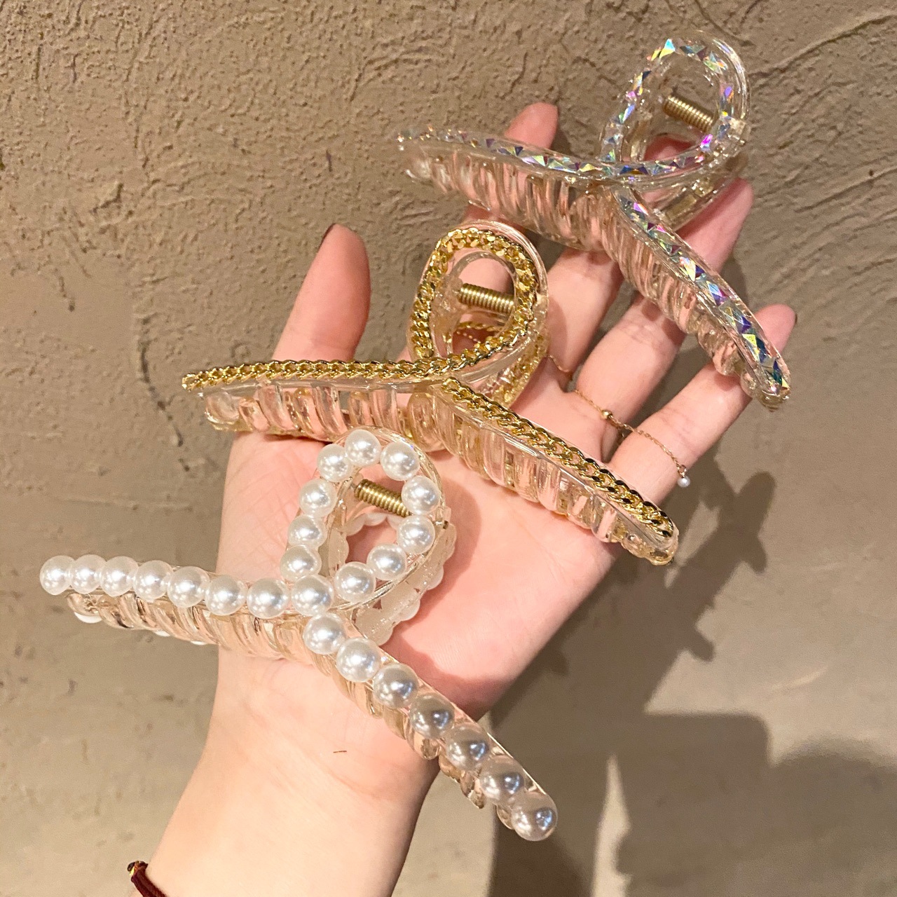 south korea dongdaemun same crystal pearl chain grip top clip bangs clip bath oversized hair grip online recommended