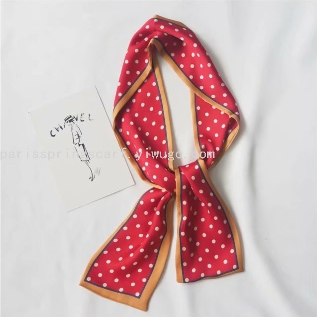 春季上新日韩款缎面仿真丝9*100经典波点平角巾丝巾围巾发带包袋巾领巾领带发饰多功能现货