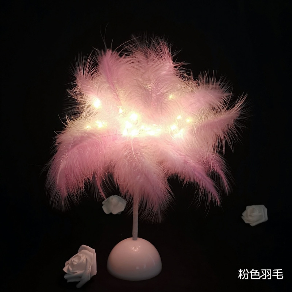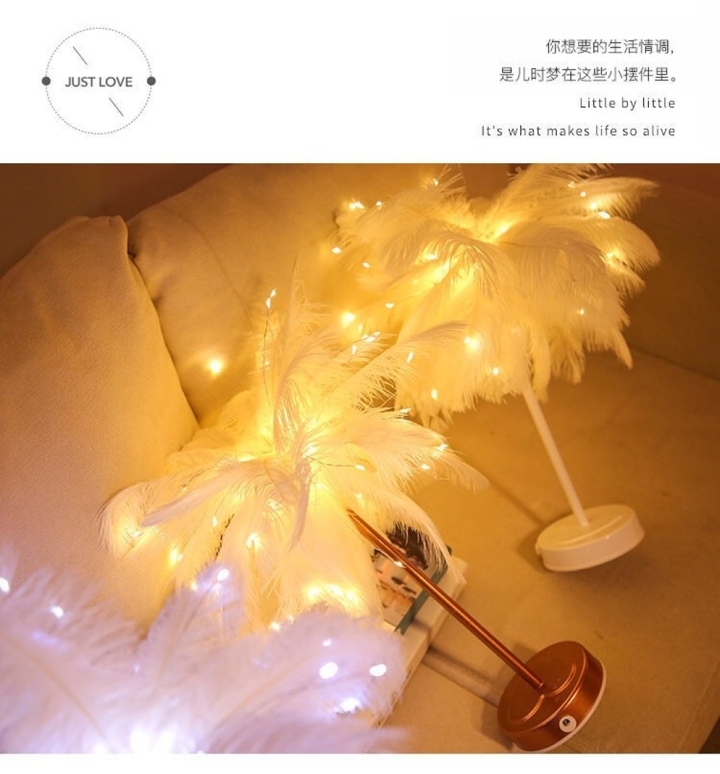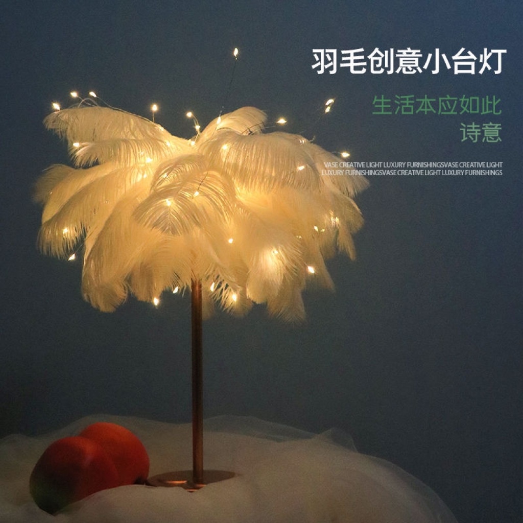 led feather lamp dandelion copper wire lamp feather table lamp internet celebrity romantic room decorative lights remote control small night lamp 中文版