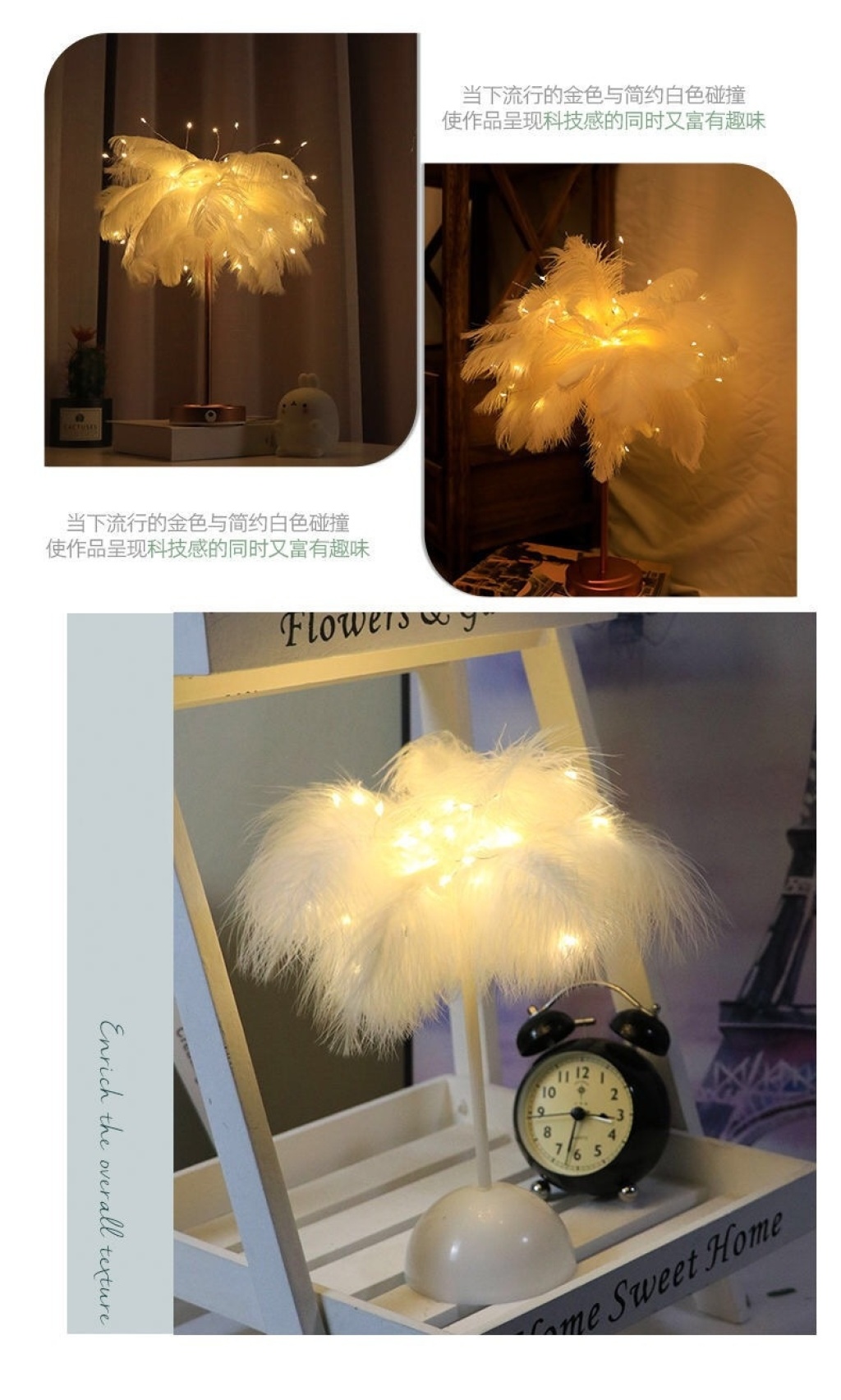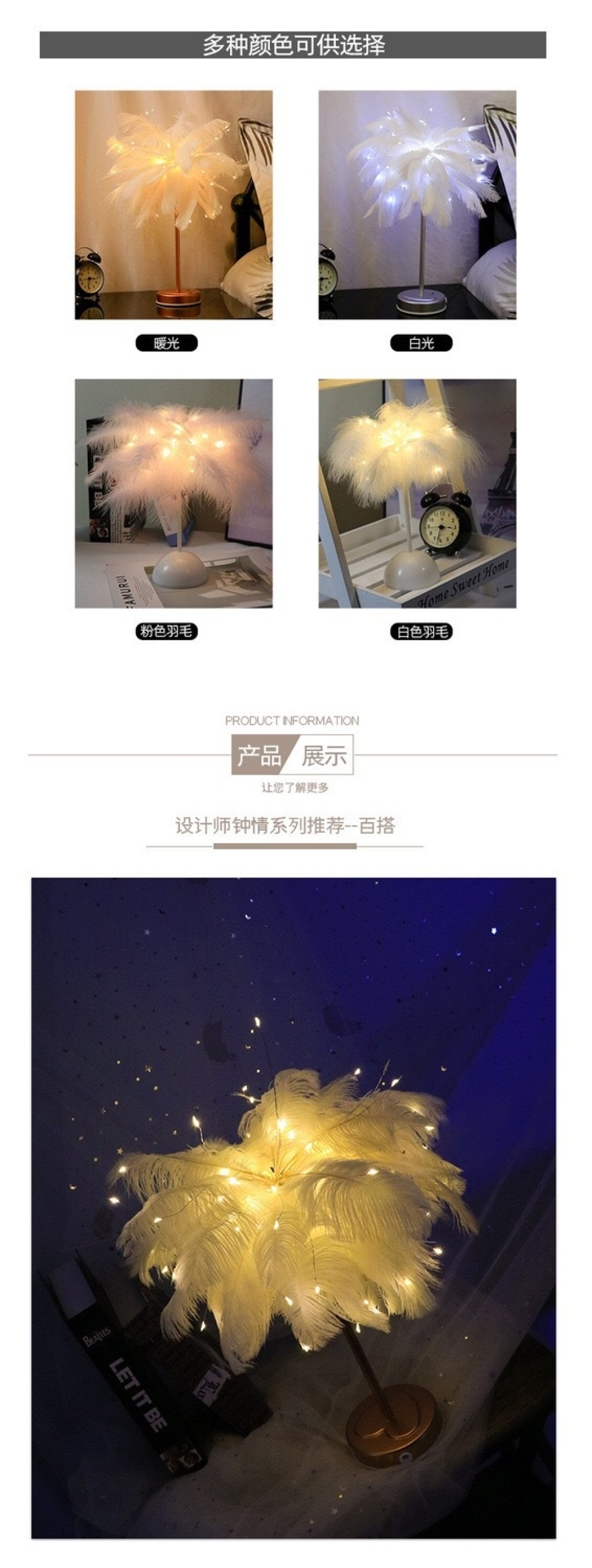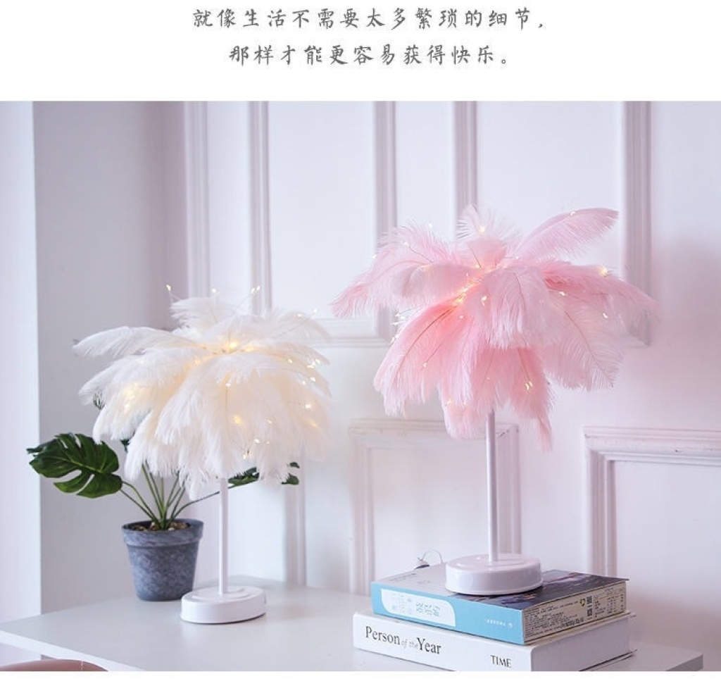 led feather lamp dandelion copper wire lamp feather table lamp internet celebrity romantic room decorative lights remote control small night lamp 中文版