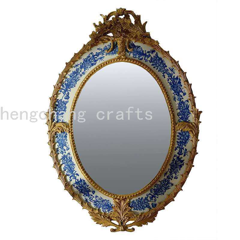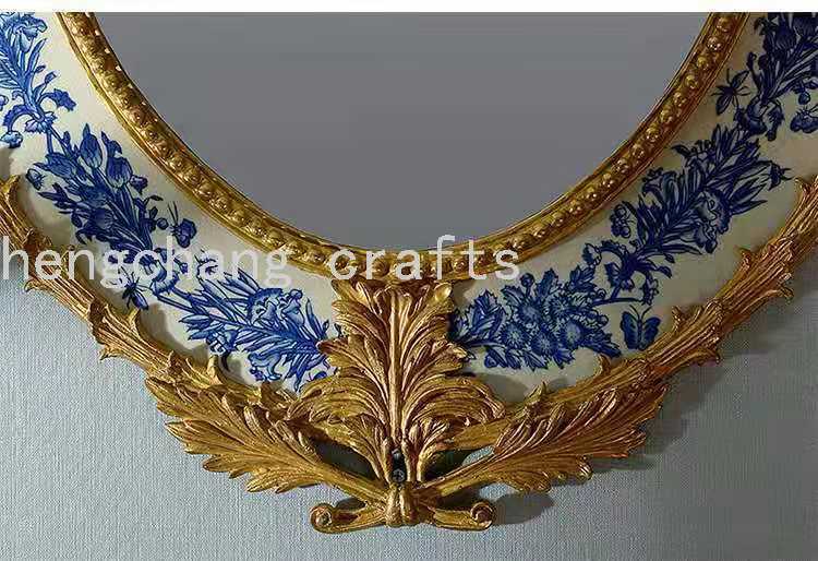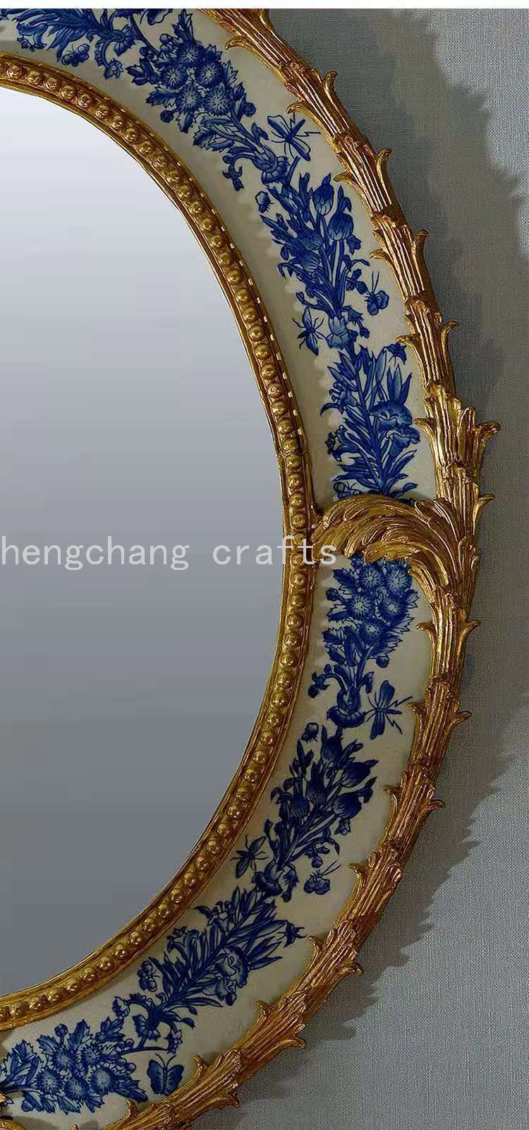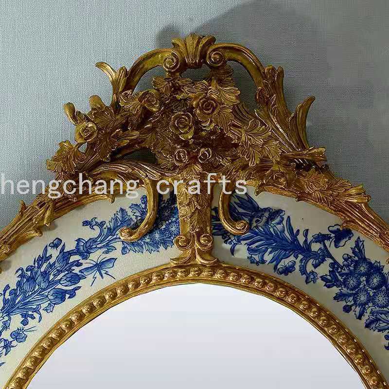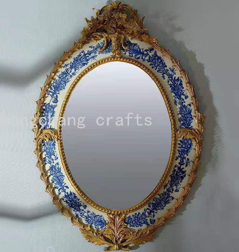 European French Baroque Style Reproduction Antique Luxury Copper Brass and Ceramic Decorative Wall Mirror 中文版