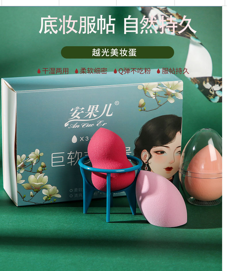 Yue Guang National Trendy Style Cosmetic Egg Set Gourd Powder Puff Beauty Blender Super Soft Smear-Proof Cosmetic Egg Bracket