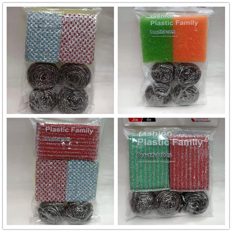 steel wire ball cleaning ball combination set with handle scouring pad sponge household brush pot dish towel cleaning gadget
