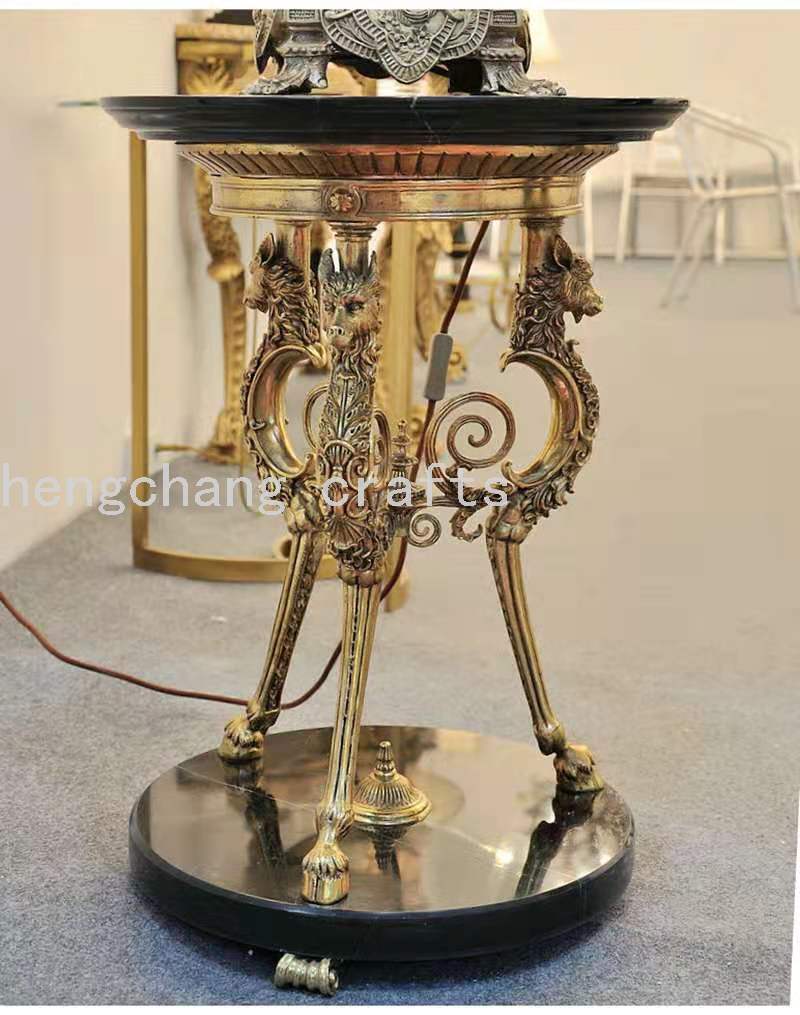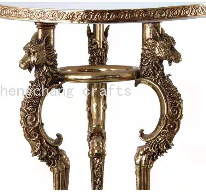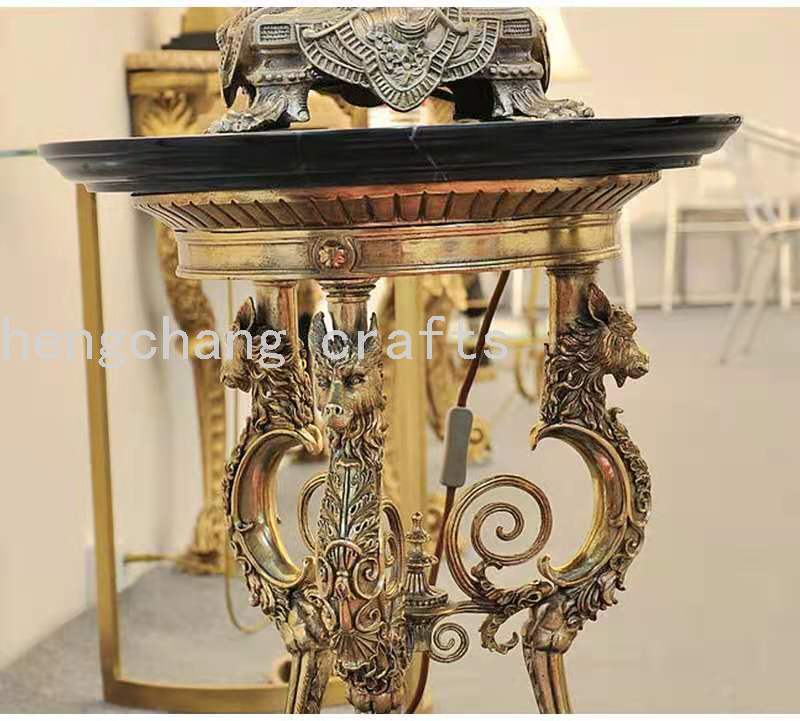 Barret Baroque Style Bronze Statue Heavy Industry Wolf Heads on a Black Background Marble Occasional Table Flower Table Matching 中文版