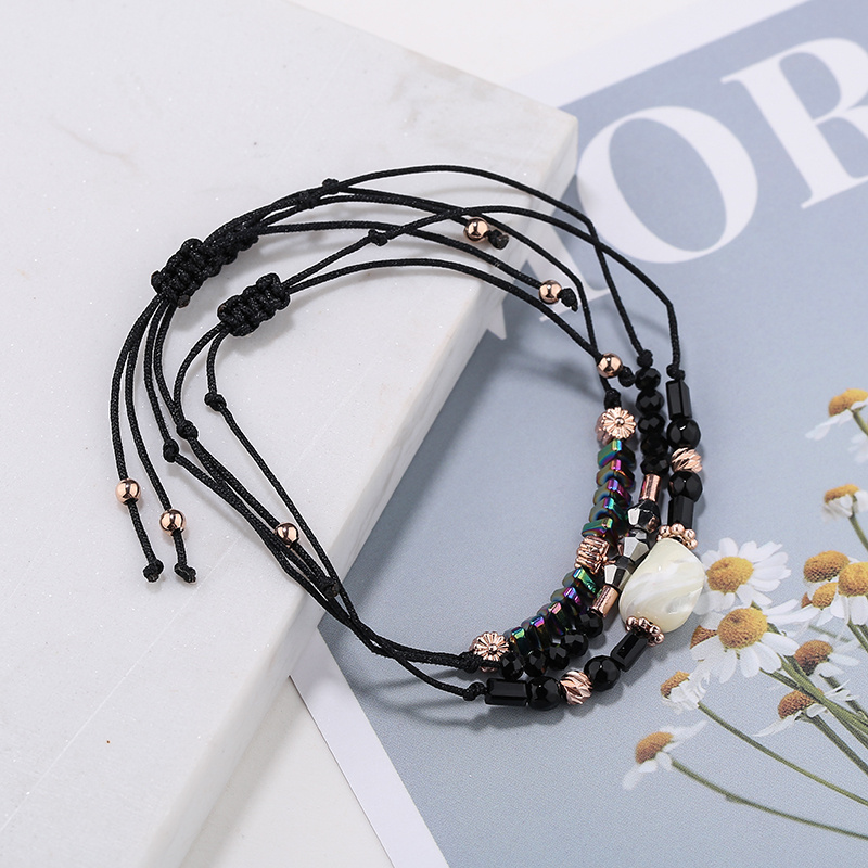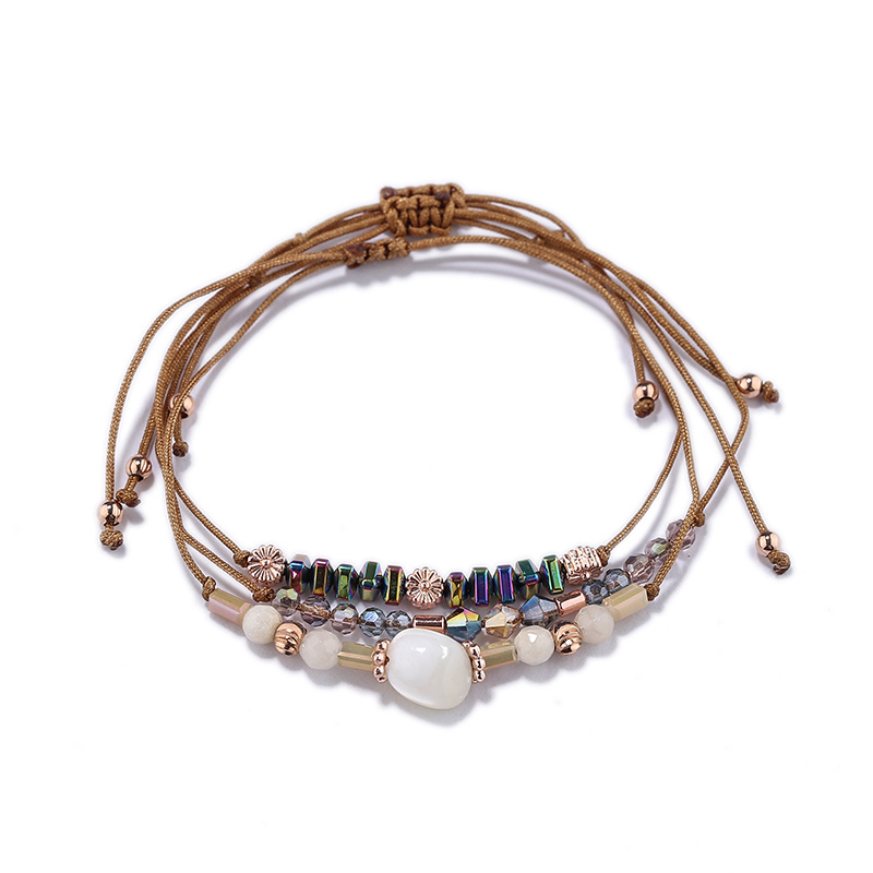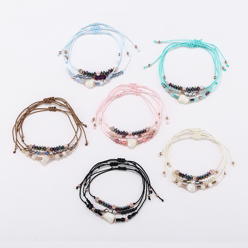 Amazon Popular Ornament Handmade Bead Woven Bracelet Female Bohemian Shell Multi-Layer Carrying Strap Pull Bracelet 中文版
