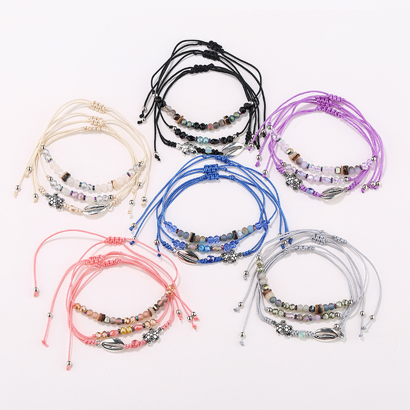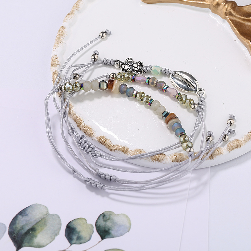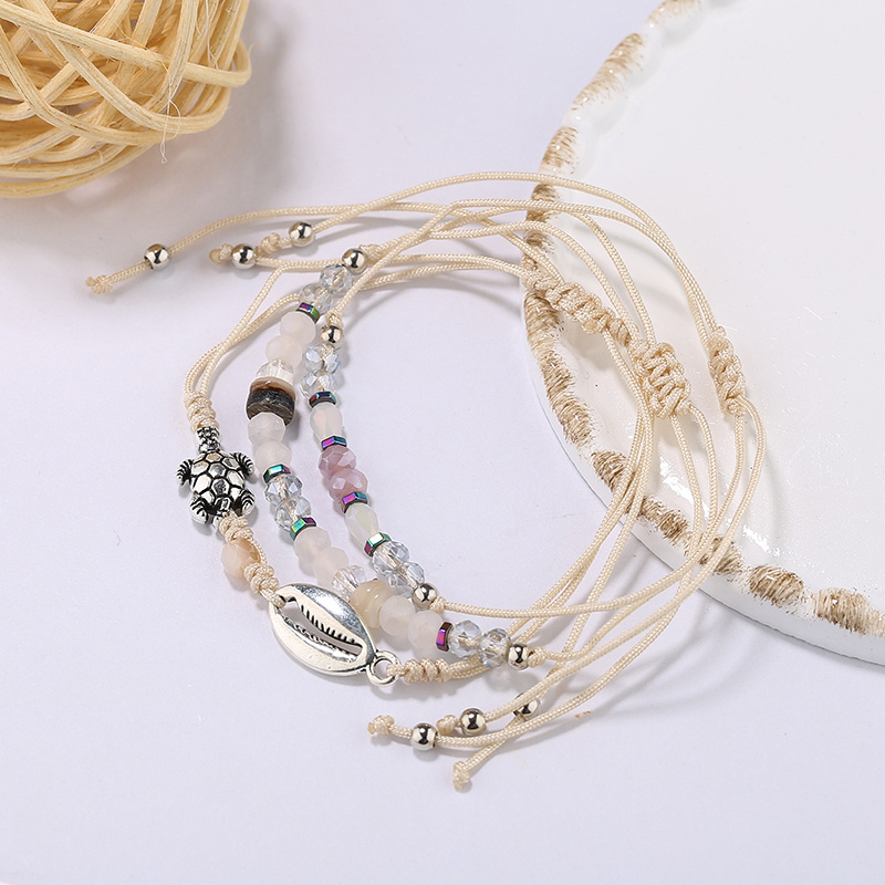 Europe and America Cross Border Bracelet Ornament Bohemian Natural Stone Bead Hand Decoration Natural Shell Hand Weaving Bracelet 中文版