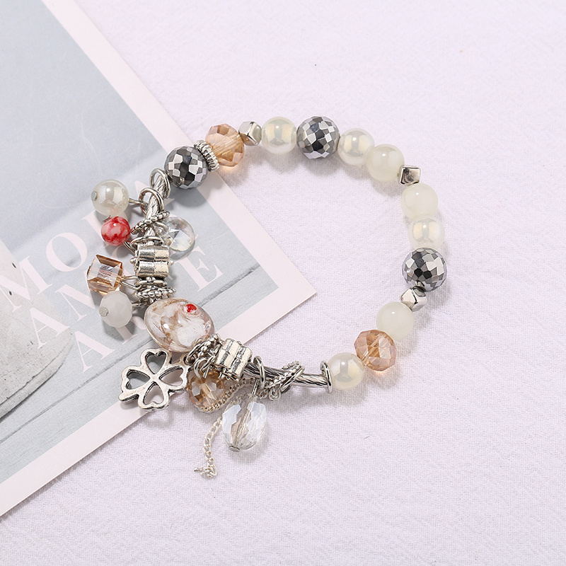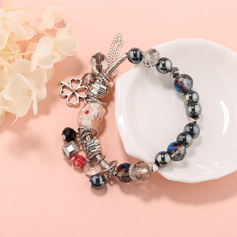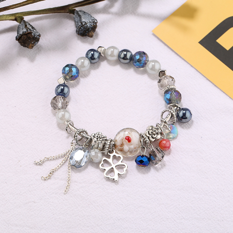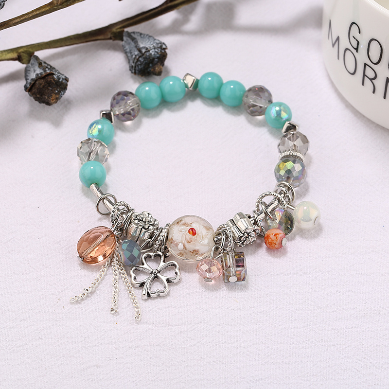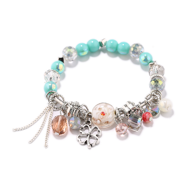 Korean Fashion Bohemian Ethnic Style Bracelet Clover Tassel Bracelet Glass Bead Creative Bracelet Bracelet 中文版