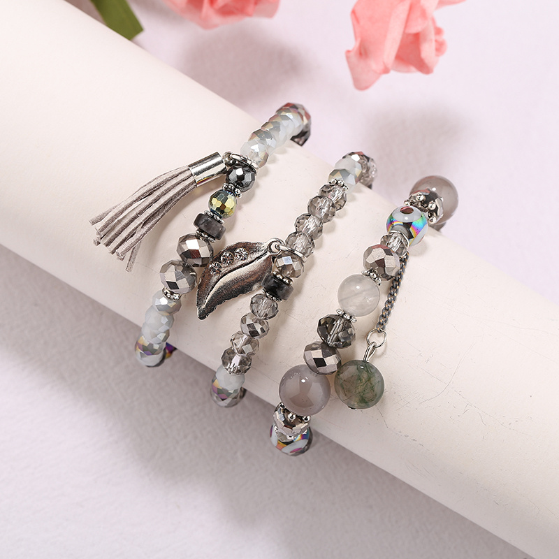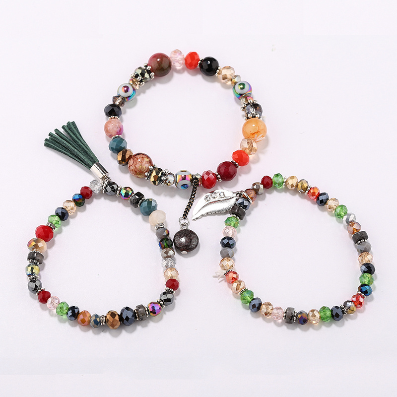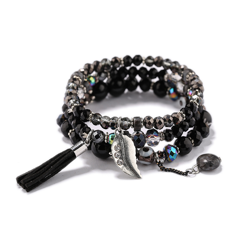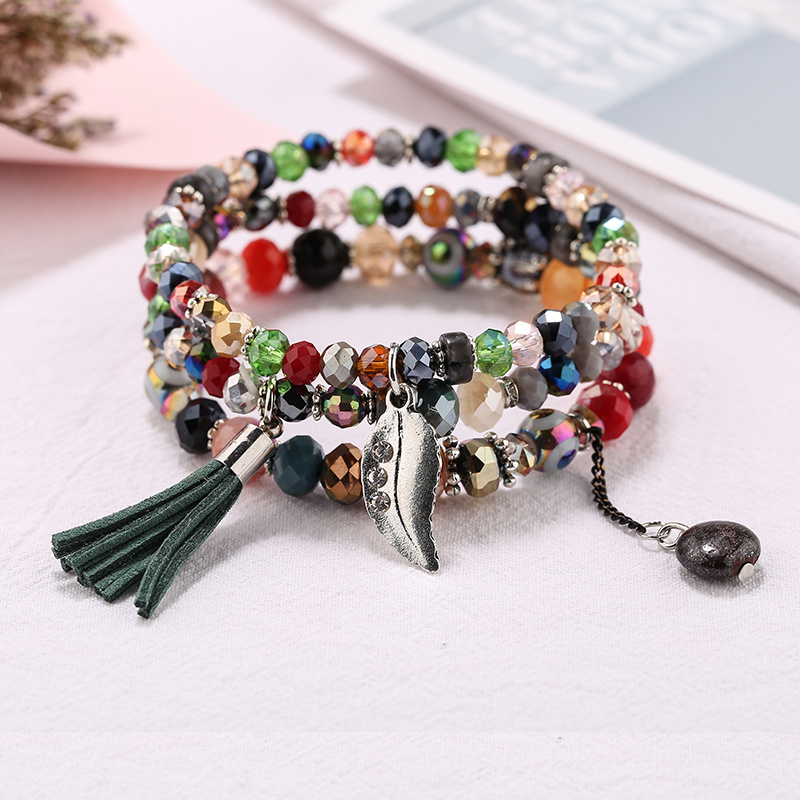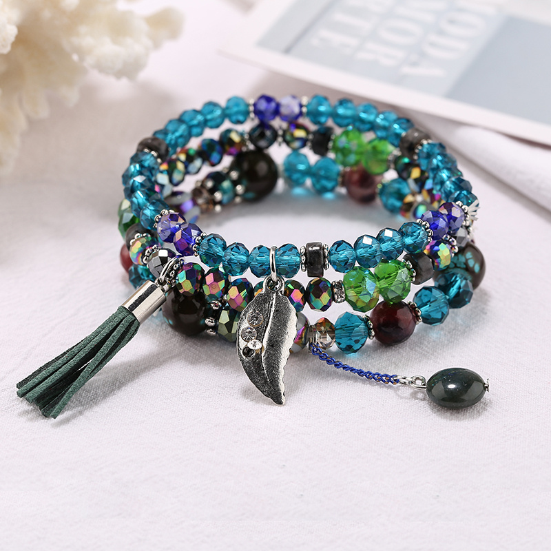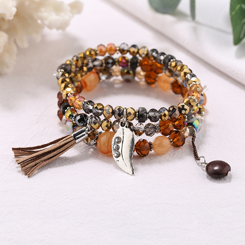 Factory Direct Sales Bohemian Ethnic Style Natural Stone Crystal Bracelet Fashion All-Match Tassel Beaded Multi-Layer Bracelet 中文版