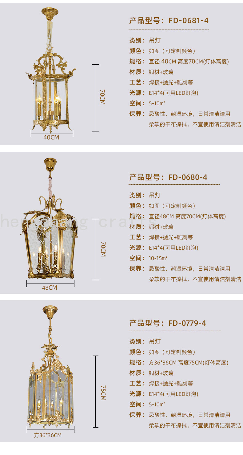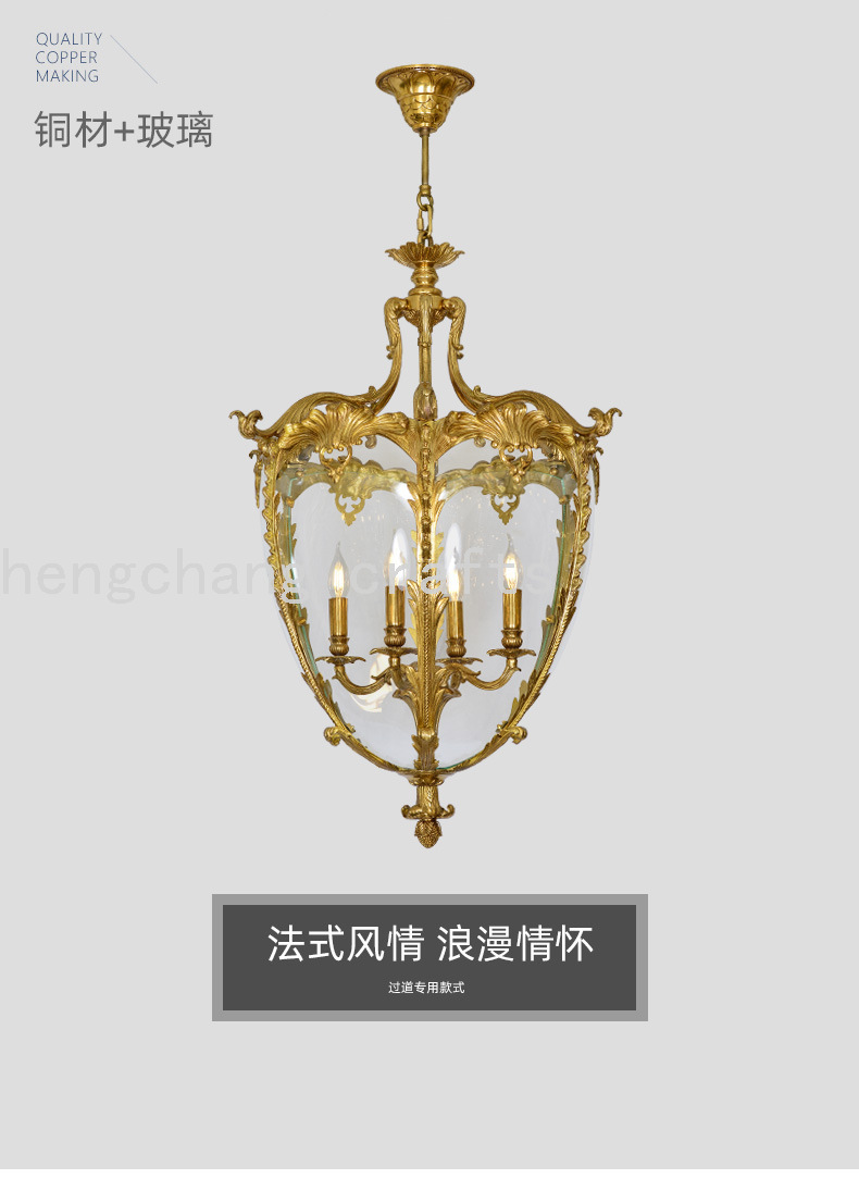 French Copper Lamps European Style Hotel Creative Duplex Villa Living Room Dining Room Dewaxing Copper Candle Light 中文版
