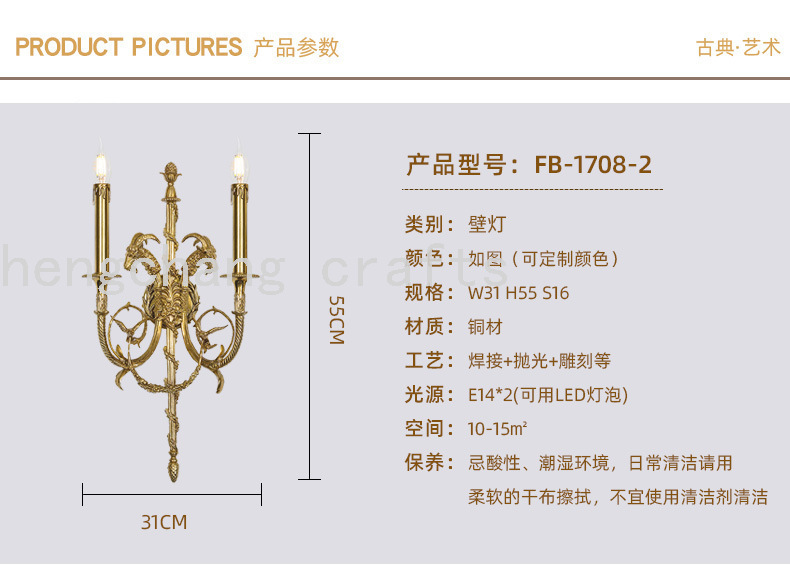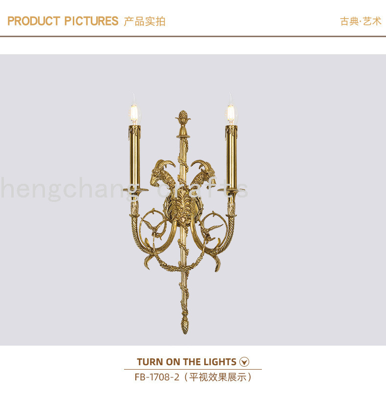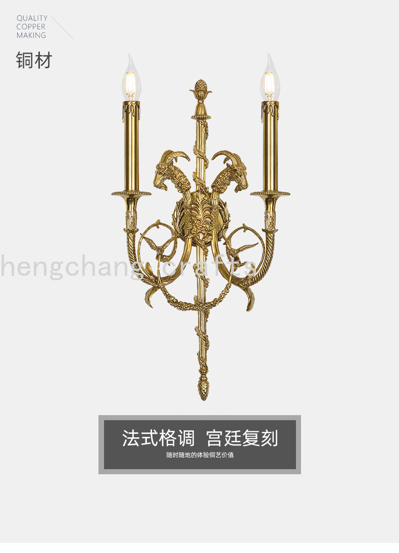 French Style Copper Wall Lamp French European Style Retro Porch Corridor Living Room Dining Room and Study Room Wall Lamp 中文版