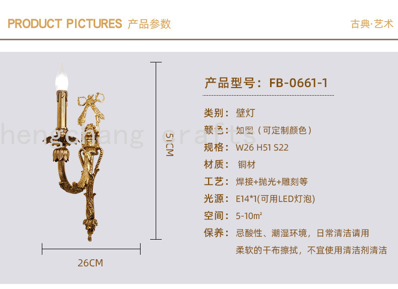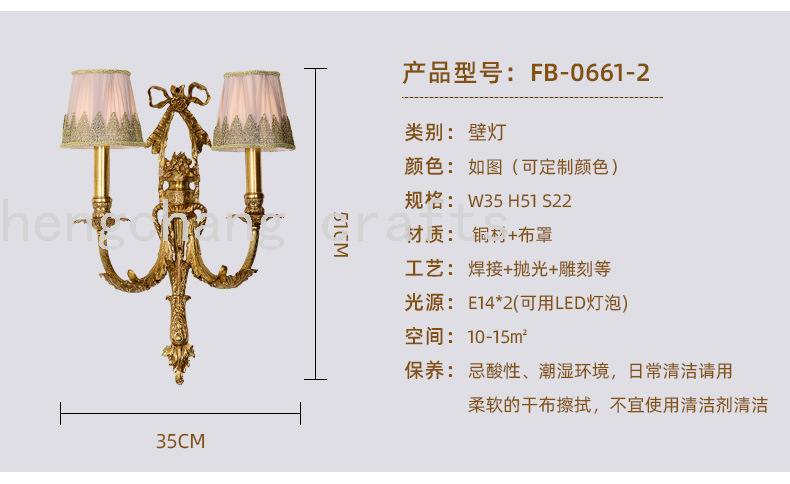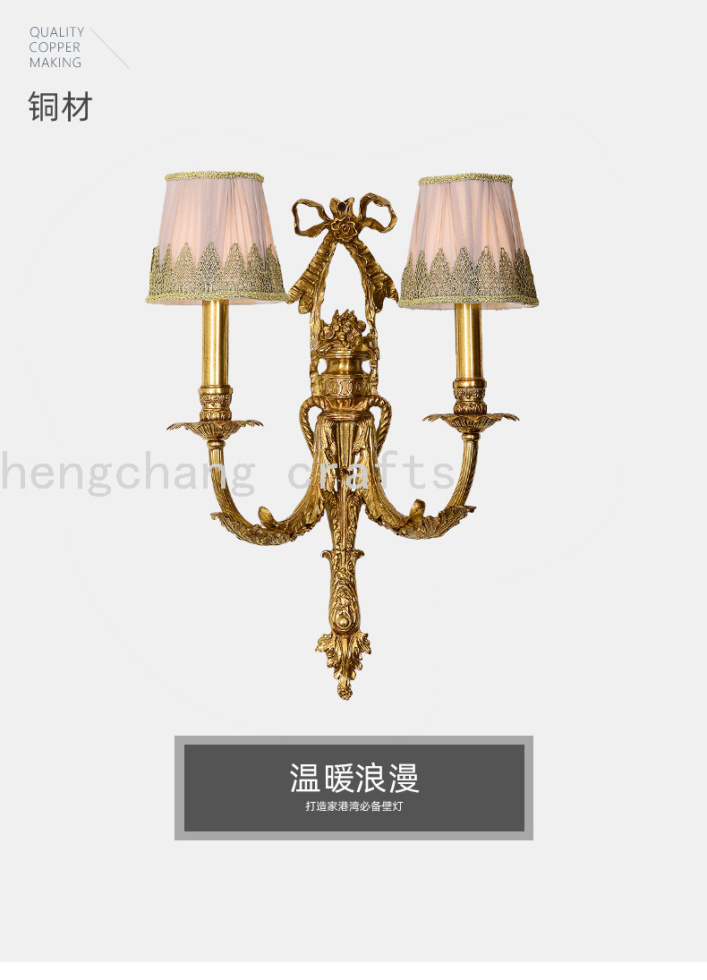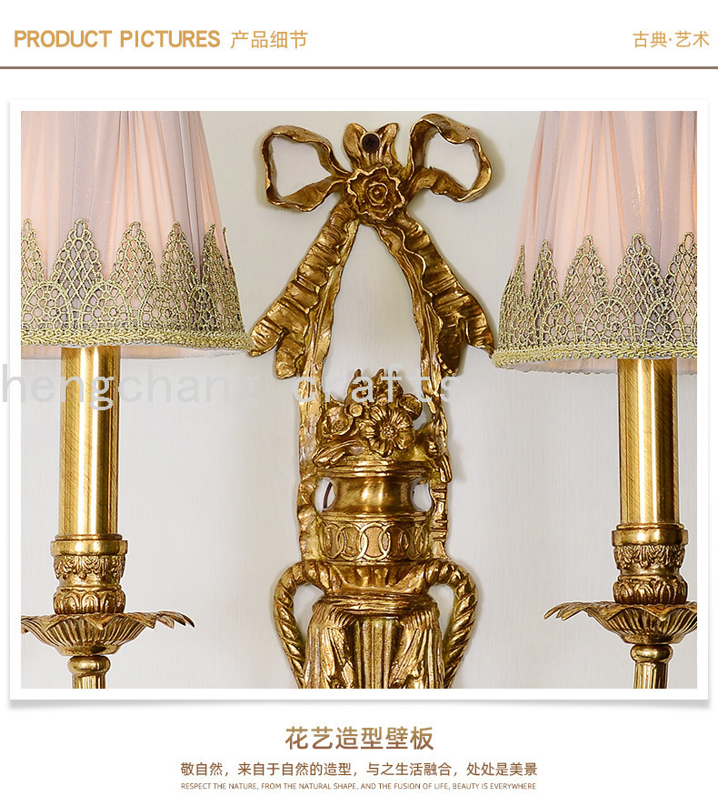 French Style Copper Wall Lamp European Style Atmosphere Villa Living Room Dining Room Bedroom Bedside Table Corridor Porch Bow Wall Lamp 中文版