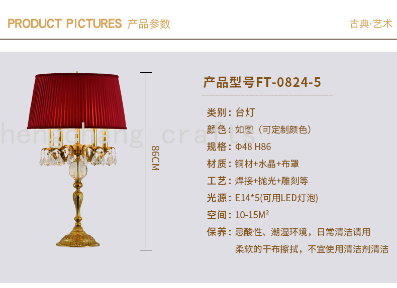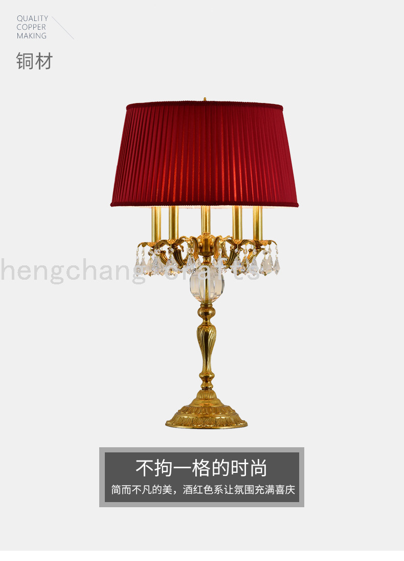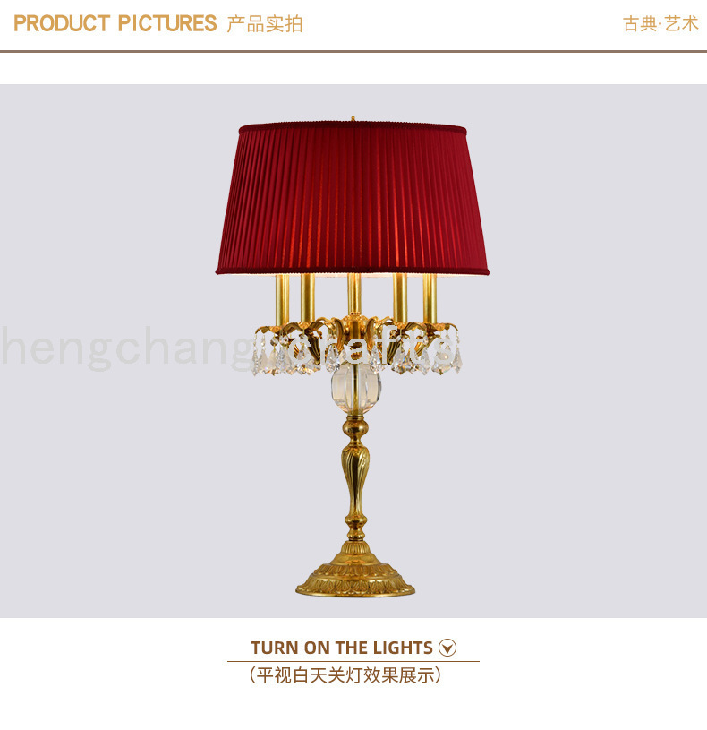 French Table Lamp Elegant Retro Living Room Bedroom Bedside Table Lamp Crystal Study Reading Lamp 中文版