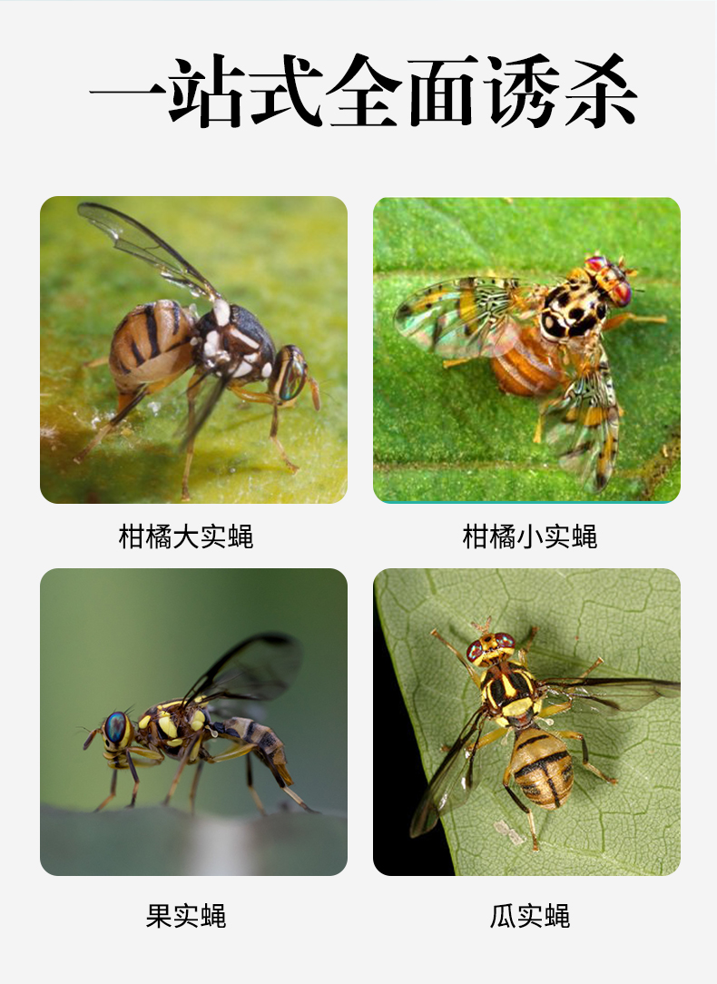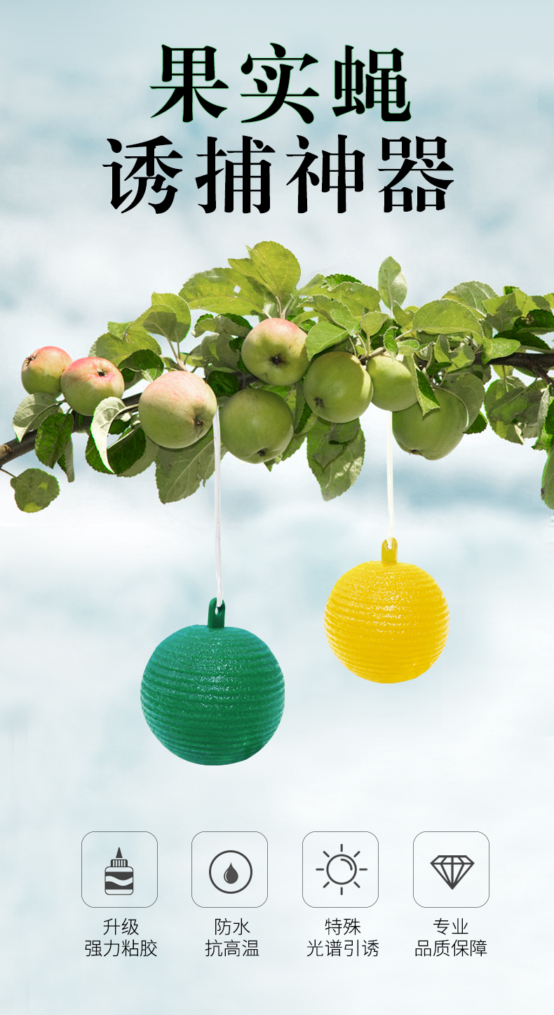 Attractant is a powerful attractant for pests such as large and small fruit flies in orchards, resistant to sunlight and rain, with ultra-strong adhesiveness, and the adhesiveness can last for more than six months.